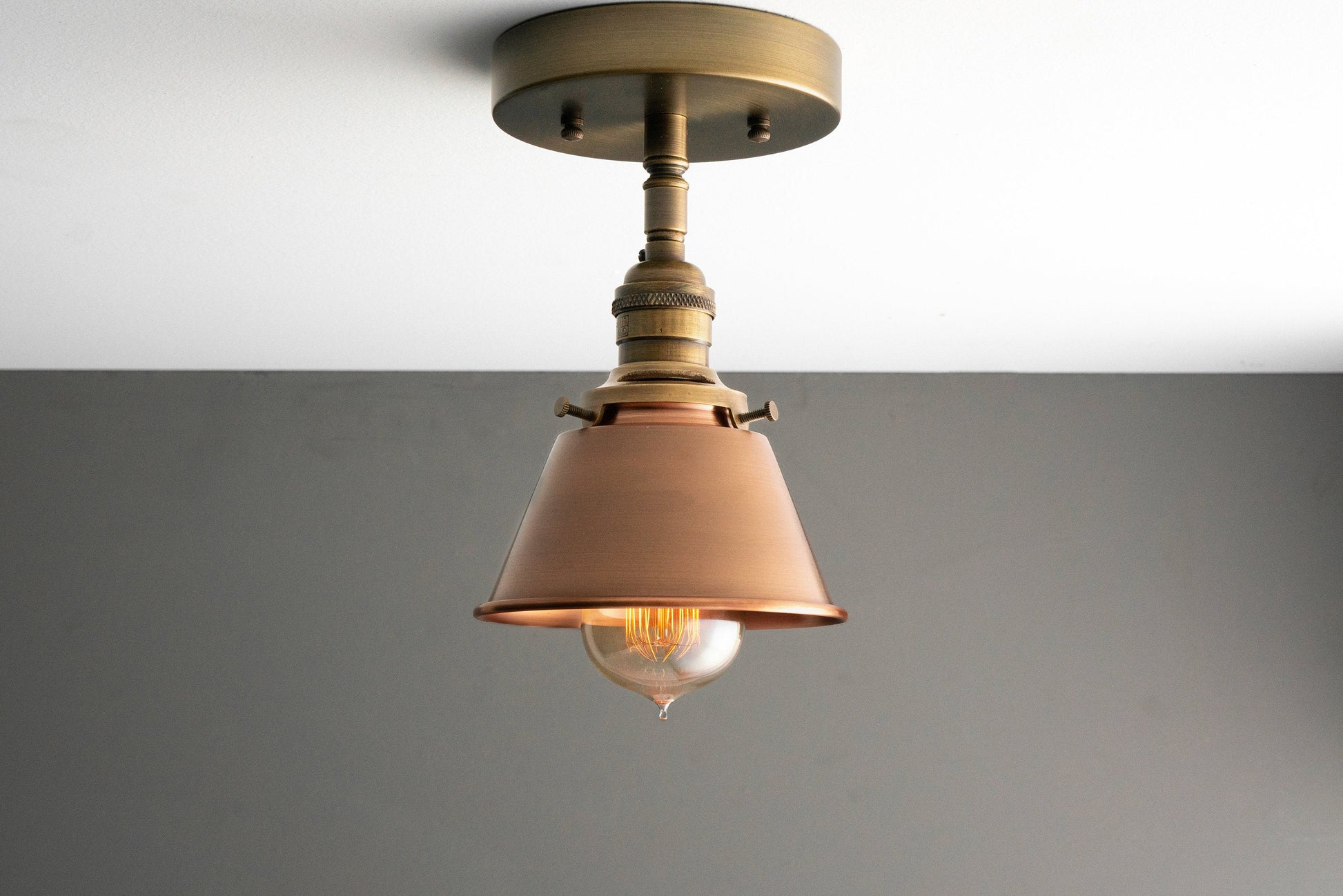 Antique Brass Light - Aged Copper Shade - Industrial Lighting - Semi Flush Lighting - Ceiling Light - Model No. 5524