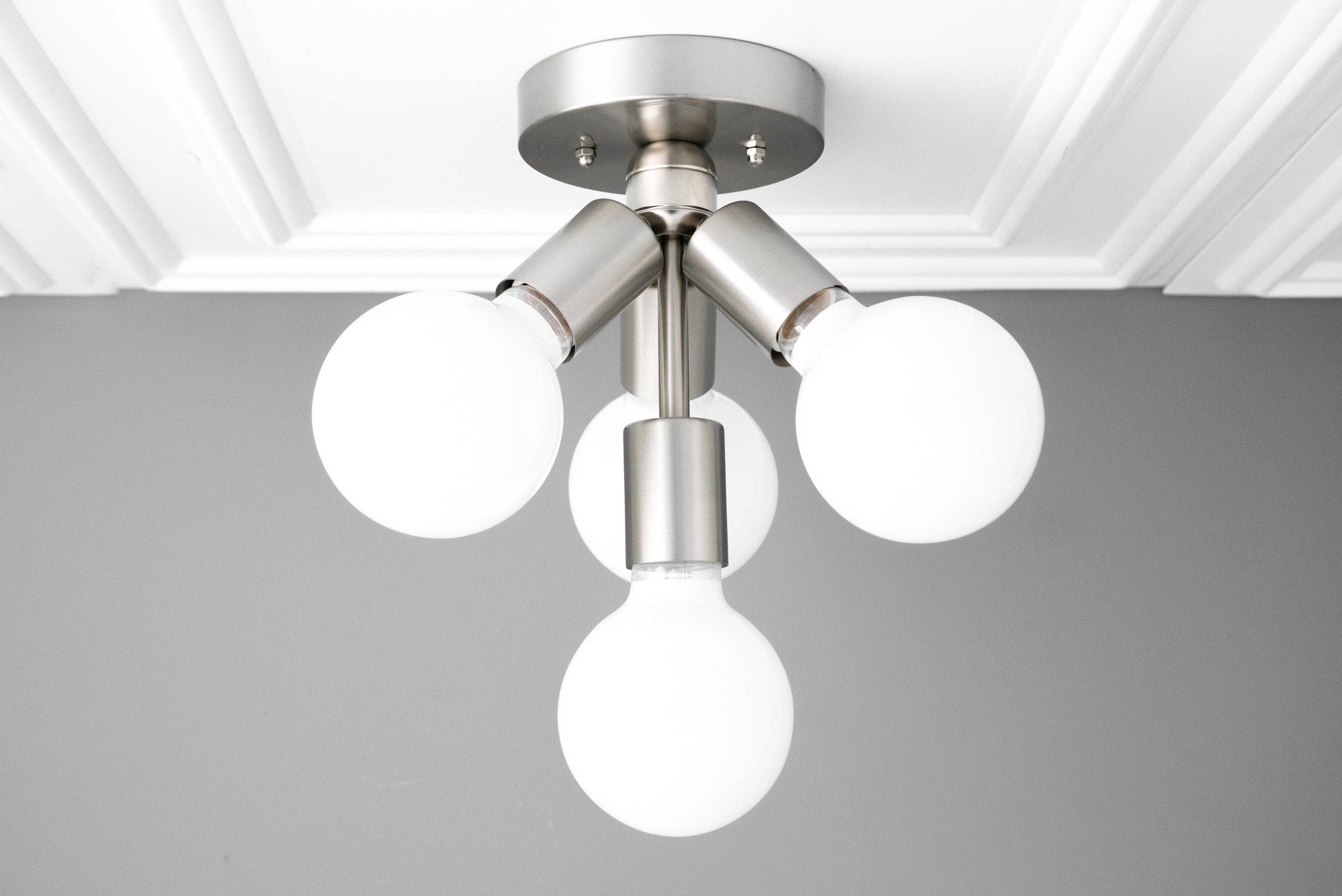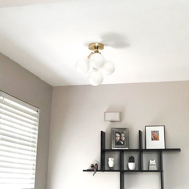 Flush Mount Globe Light - Brass Fixture - White Globe - Ceiling Lights - Flush Mount Light - Globe Fixture - Model No. 7605