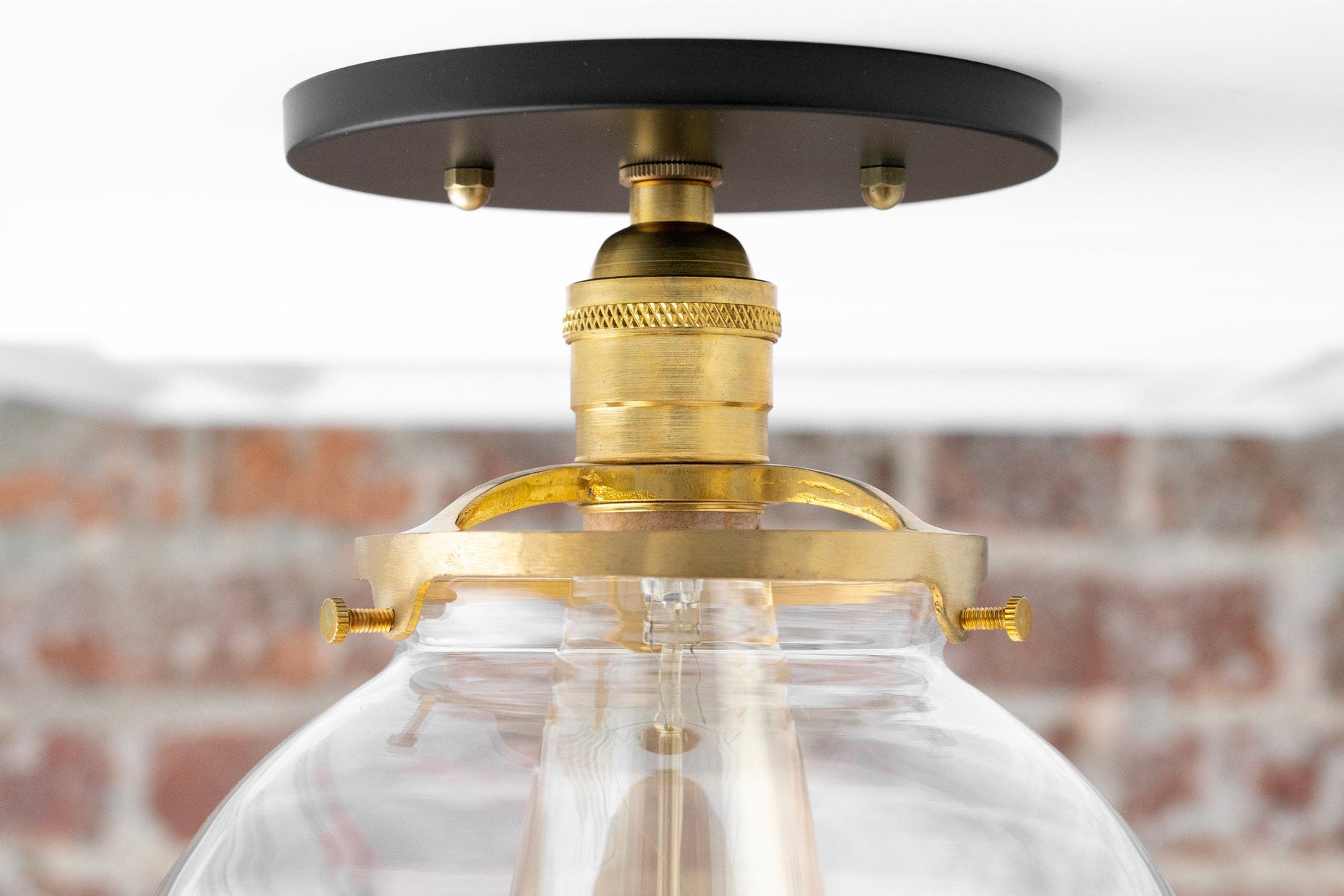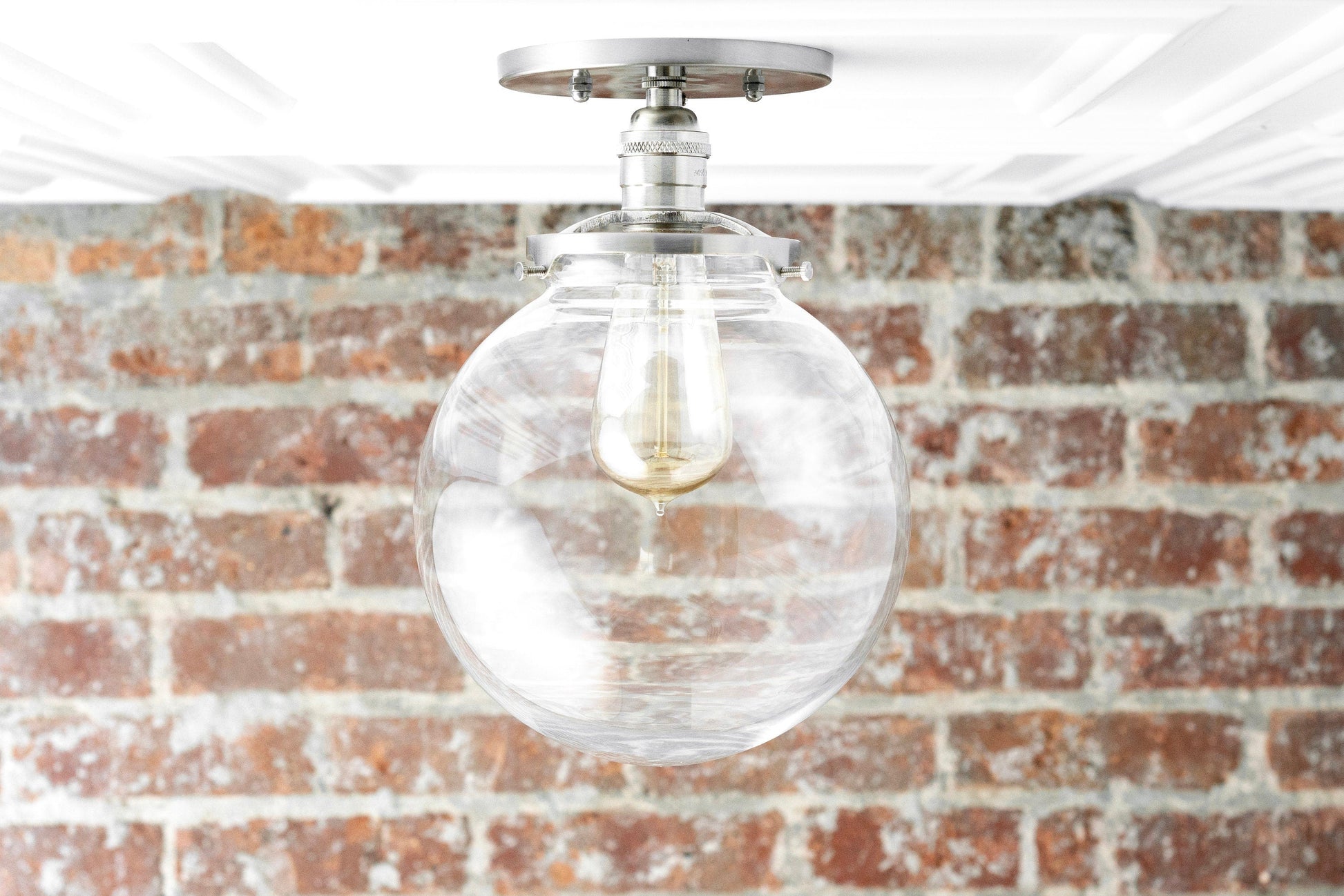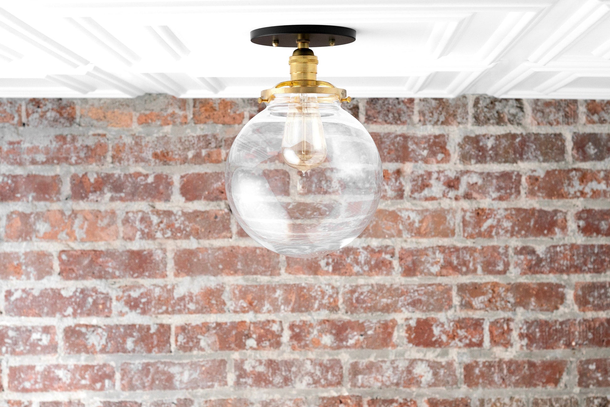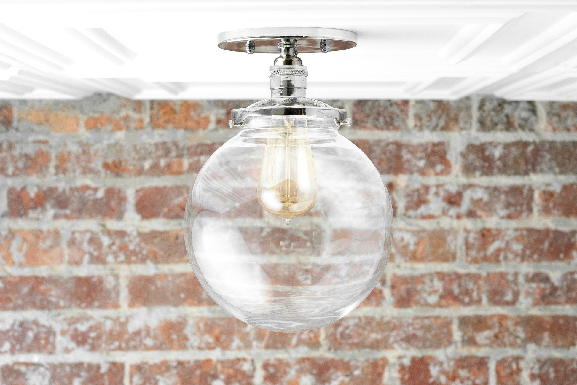 Large Globe Light - Flush Mount Light - Hardwired Light - Mid Century Modern - Edison Bulb - 8 inch Clear Globe - Model No. 6365