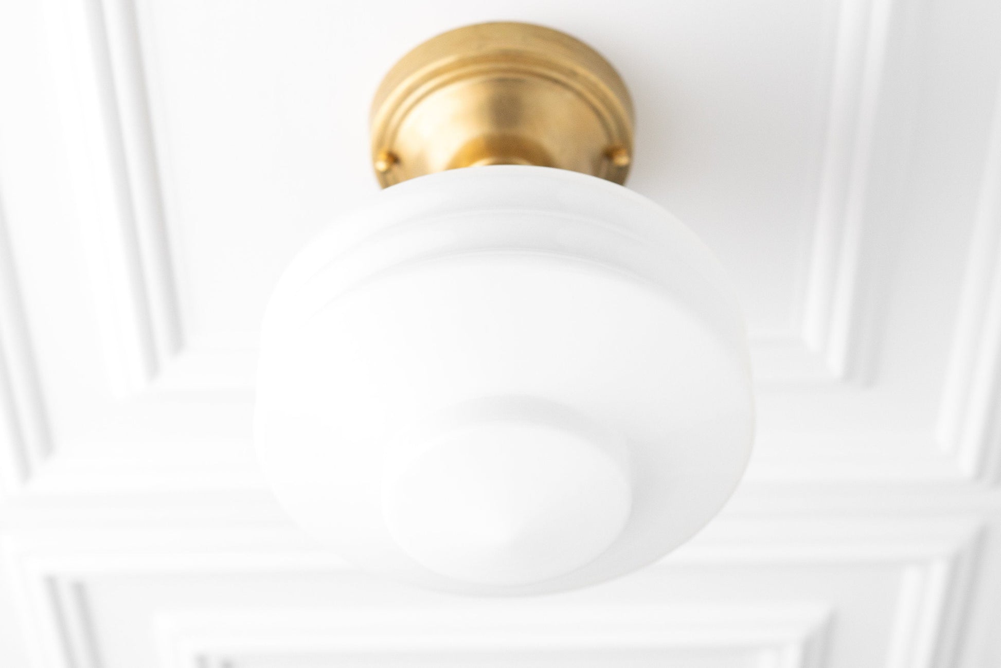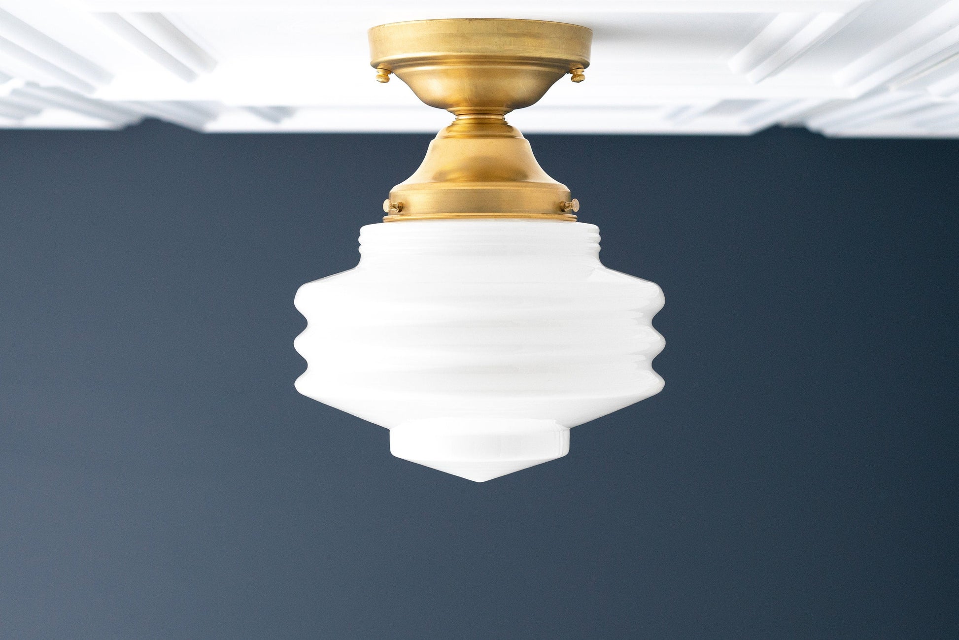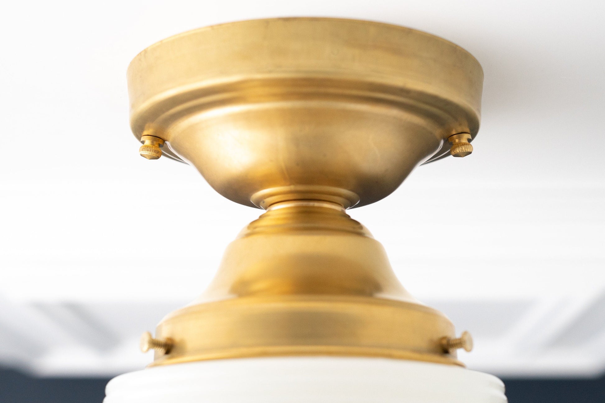 Opal Ceiling Light - Semi Flush Light - Retro Light Fixture - Textured Globe - Brass Ceiling Lamp - Model No. 7510