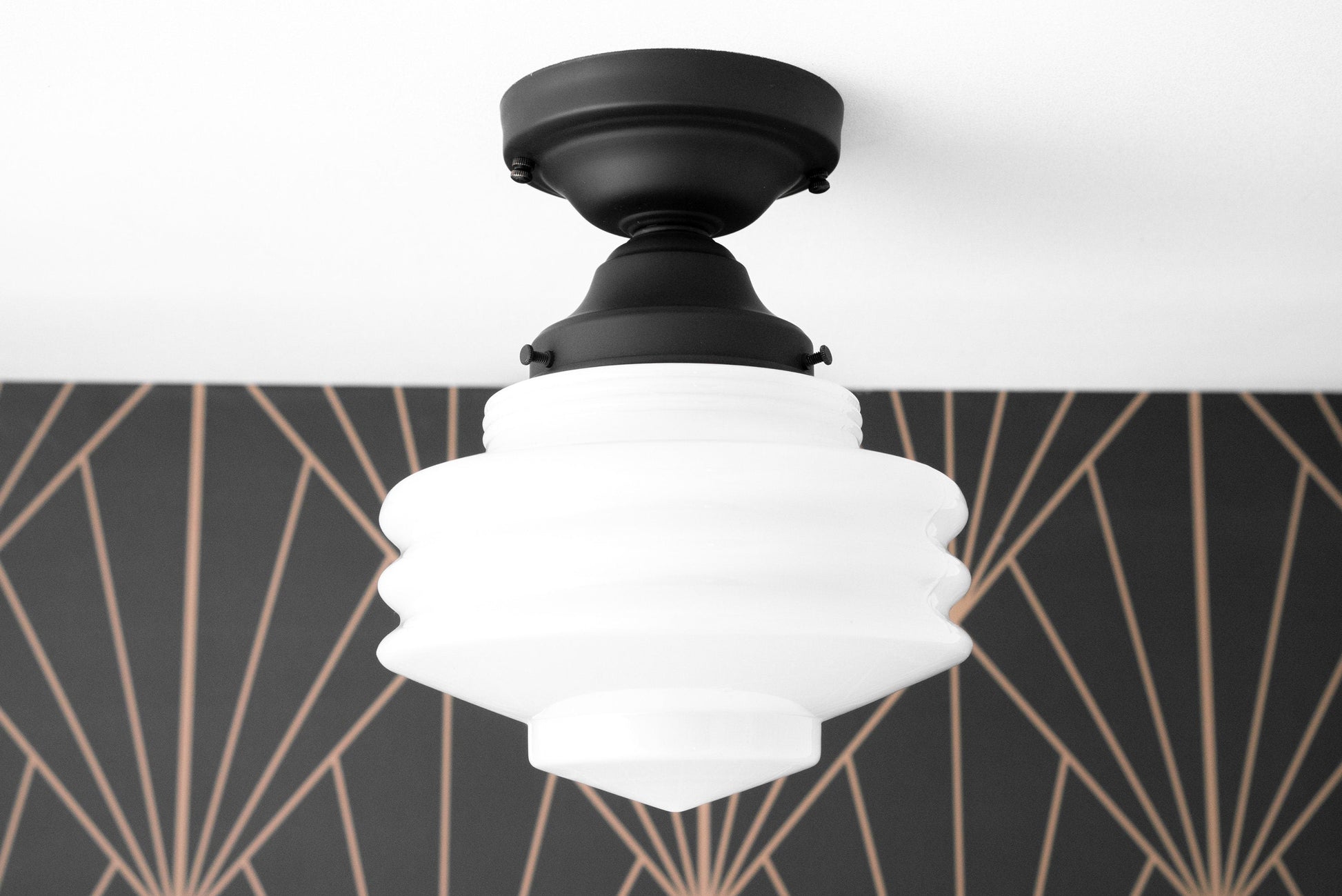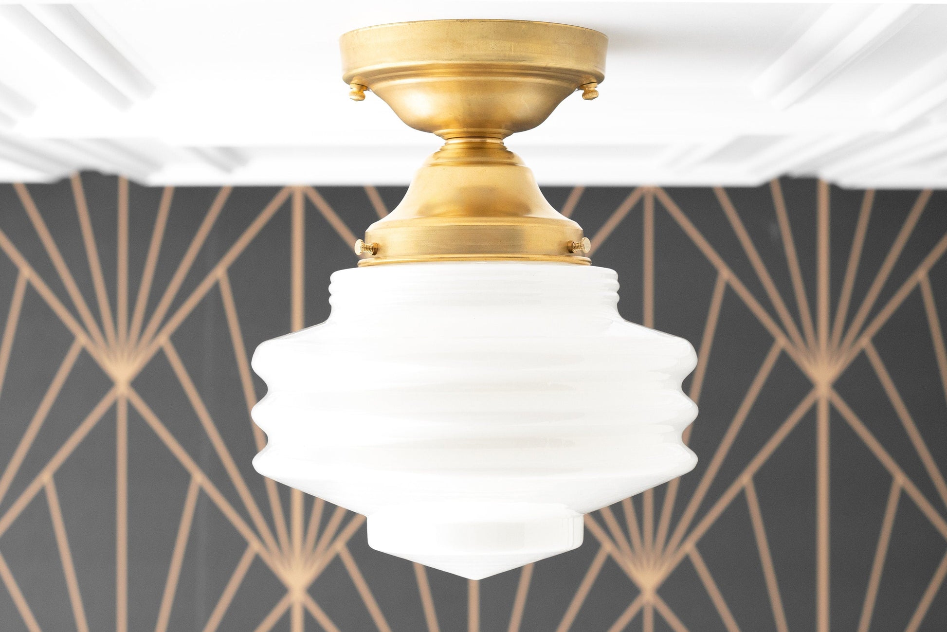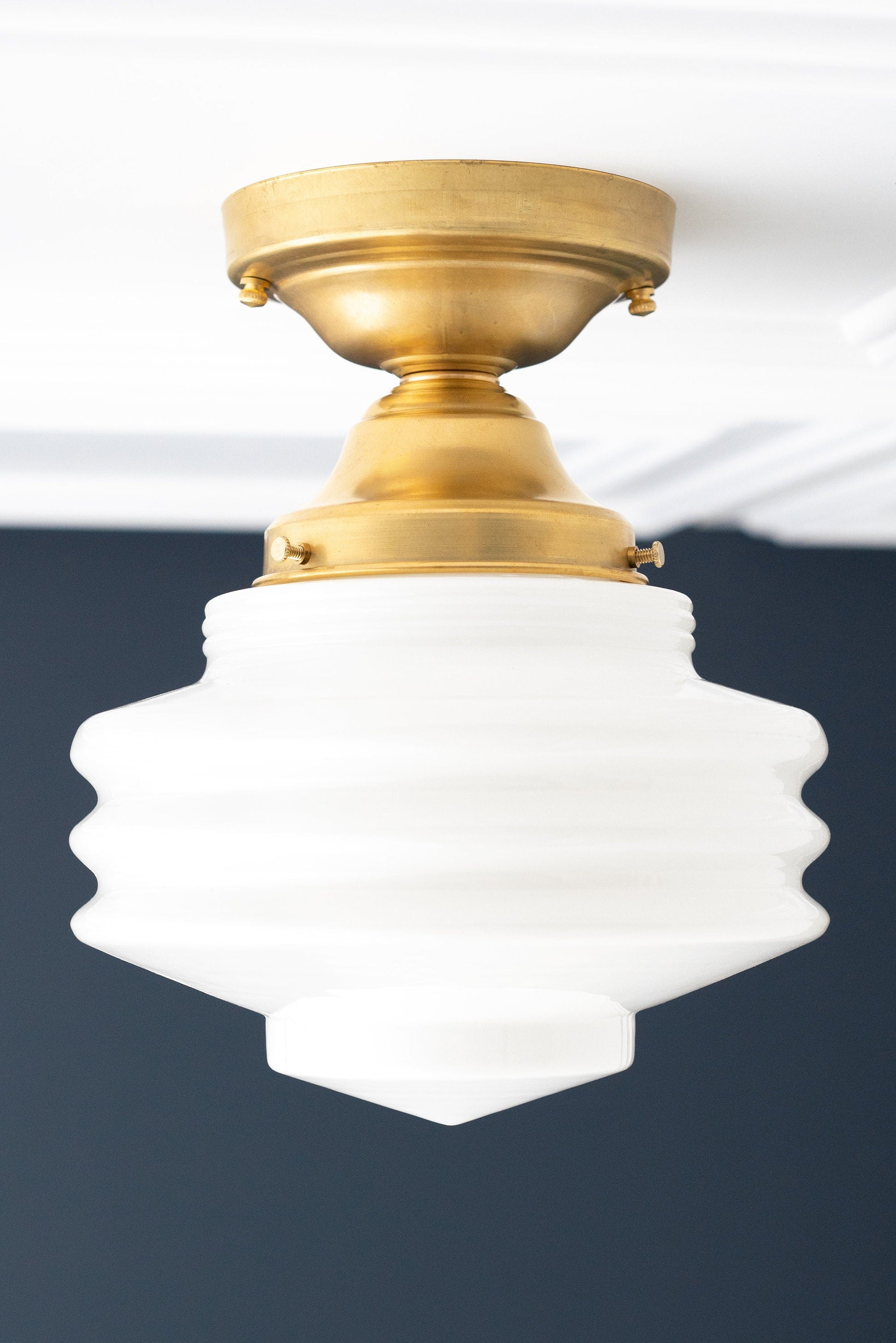 Opal Ceiling Light - Semi Flush Light - Retro Light Fixture - Textured Globe - Brass Ceiling Lamp - Model No. 7510