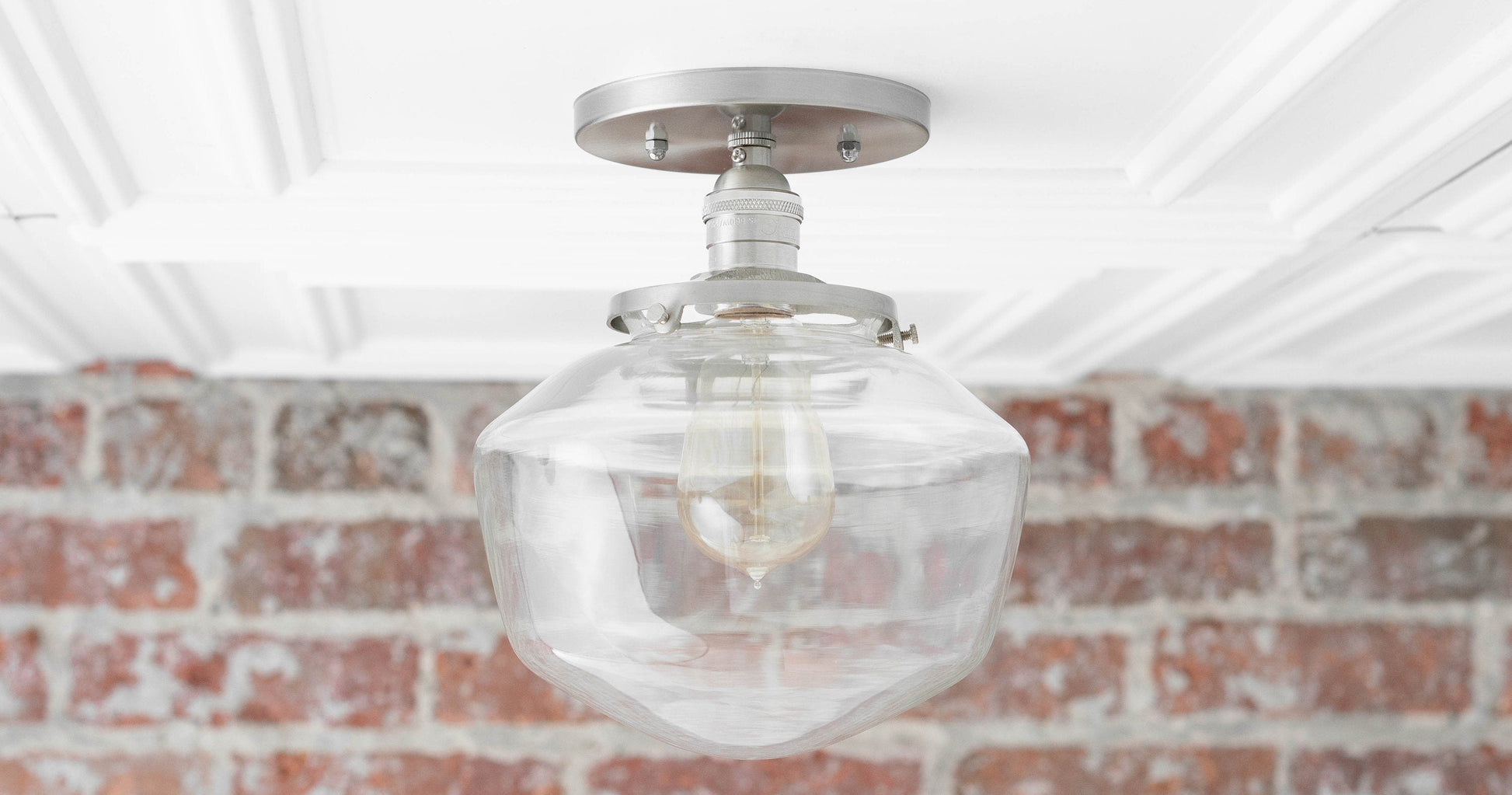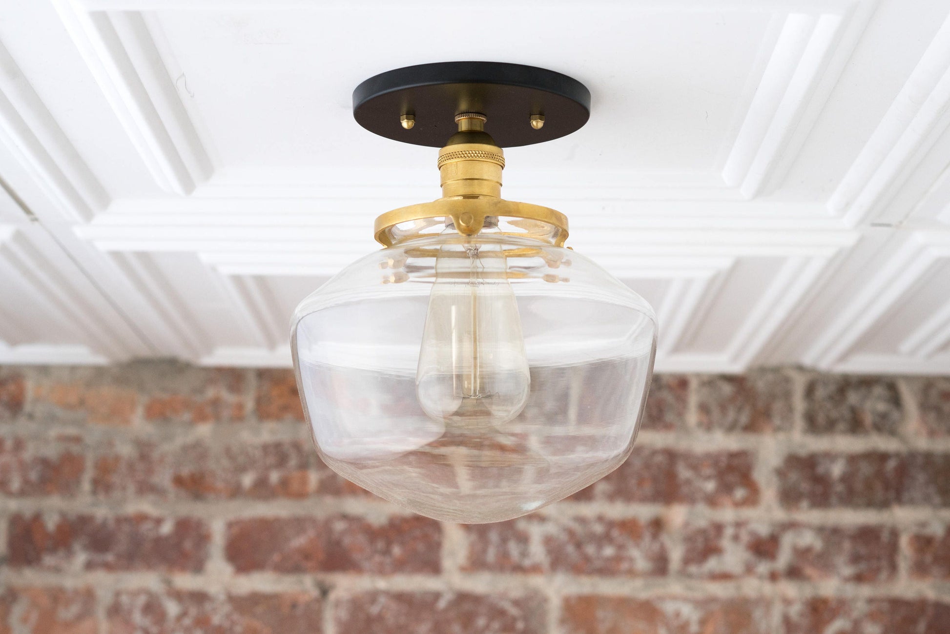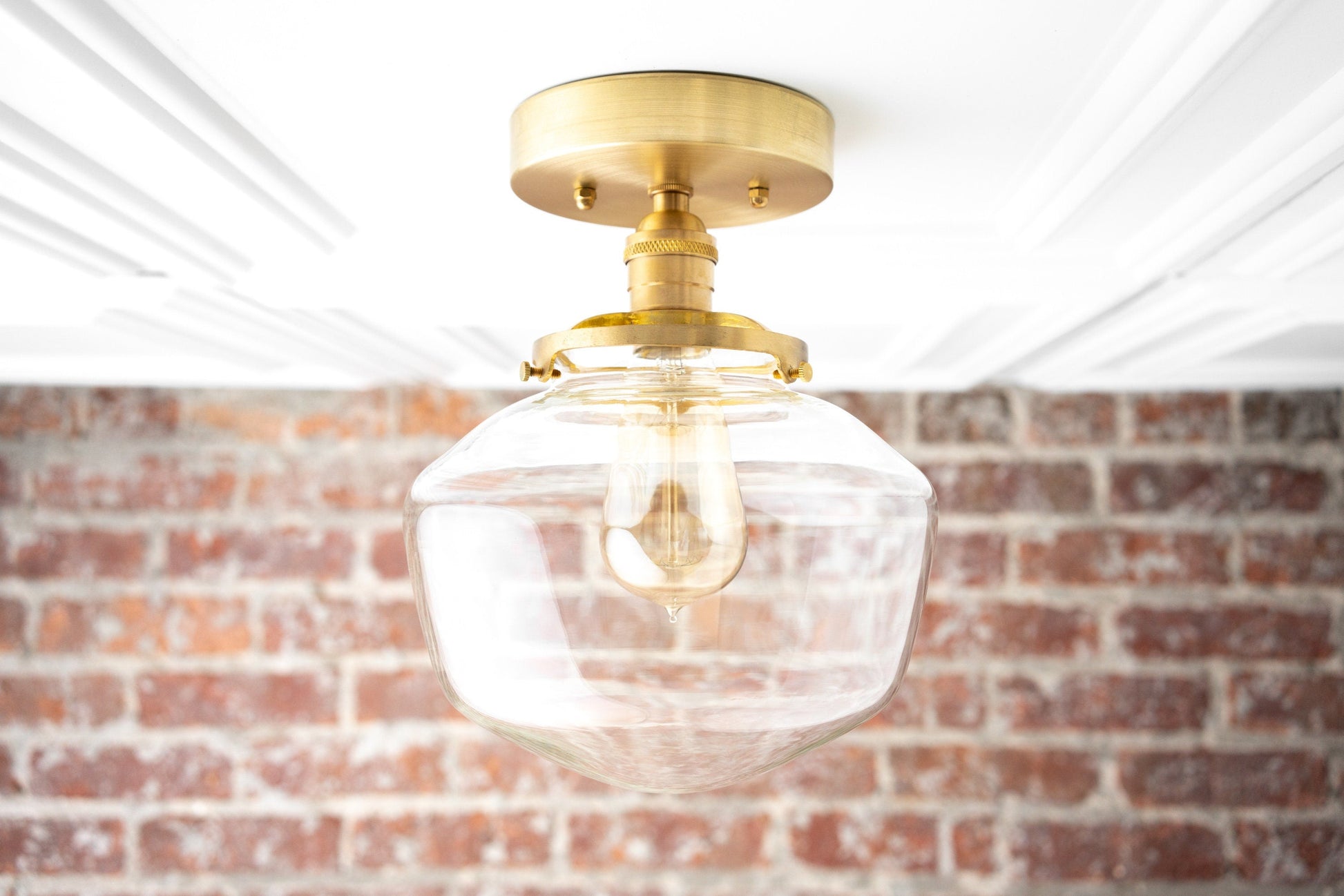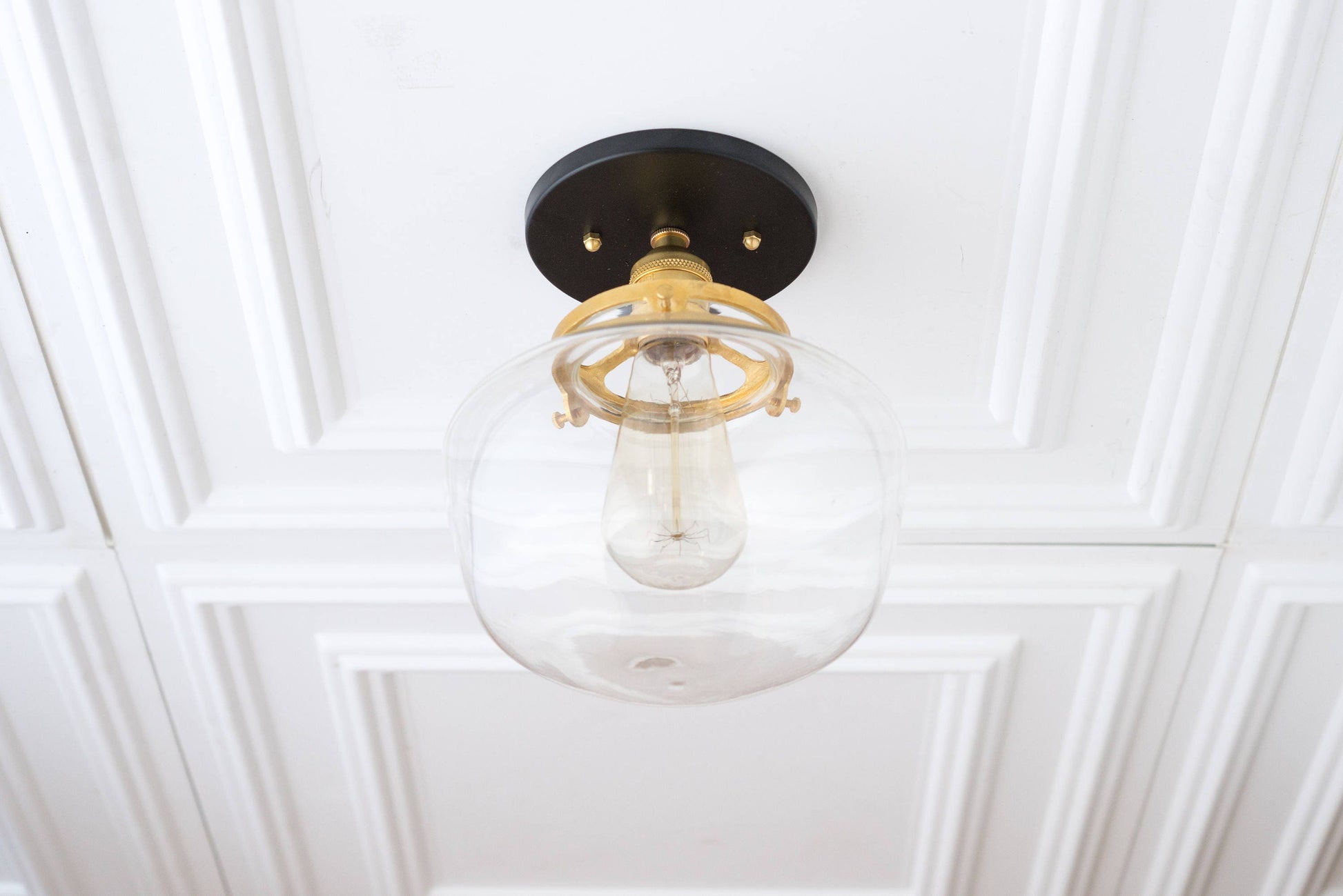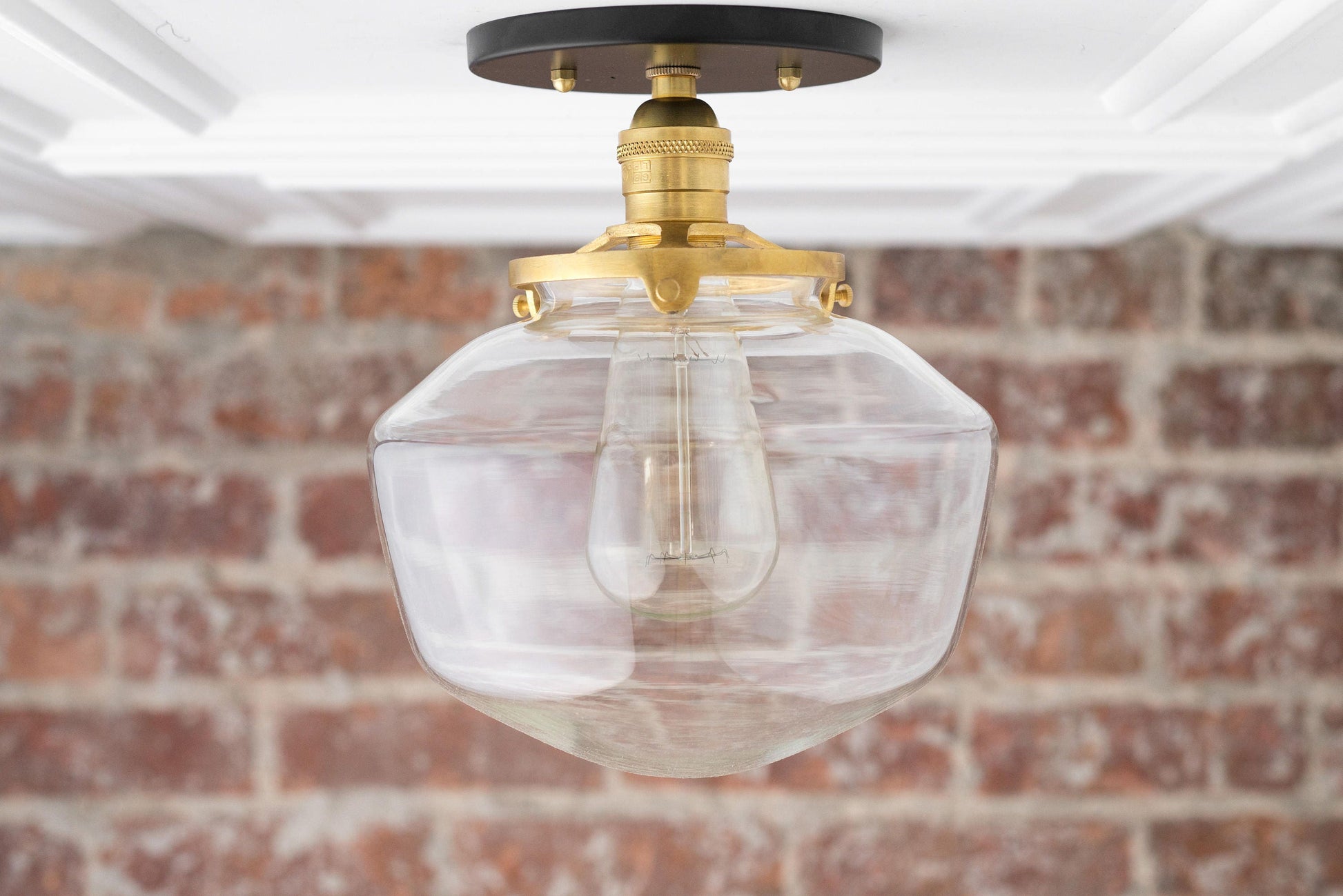 Schoolhouse Light - Modern Ceiling Light - Glass Fixture Ceiling - Brass Black Lighting - Model No. 8605