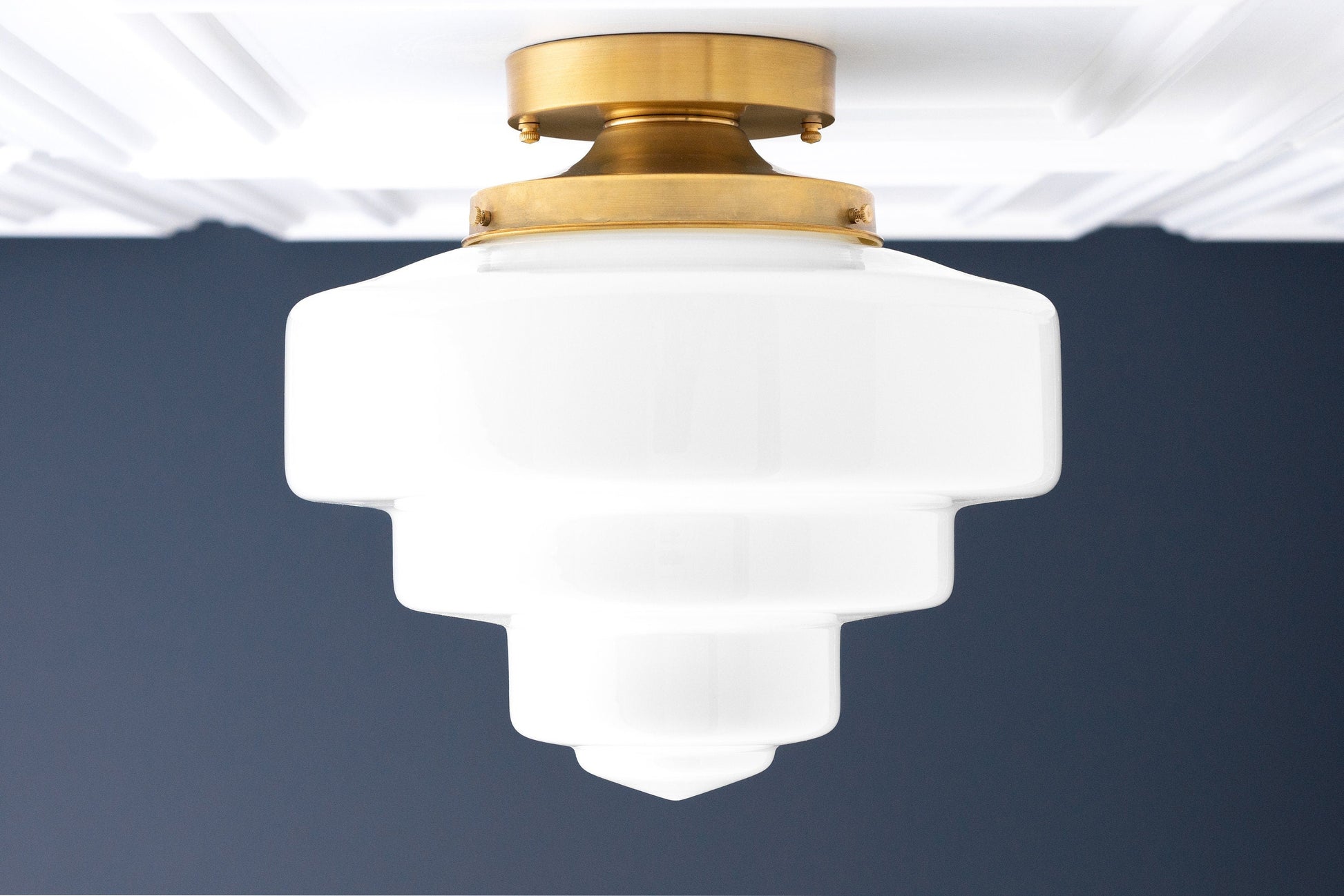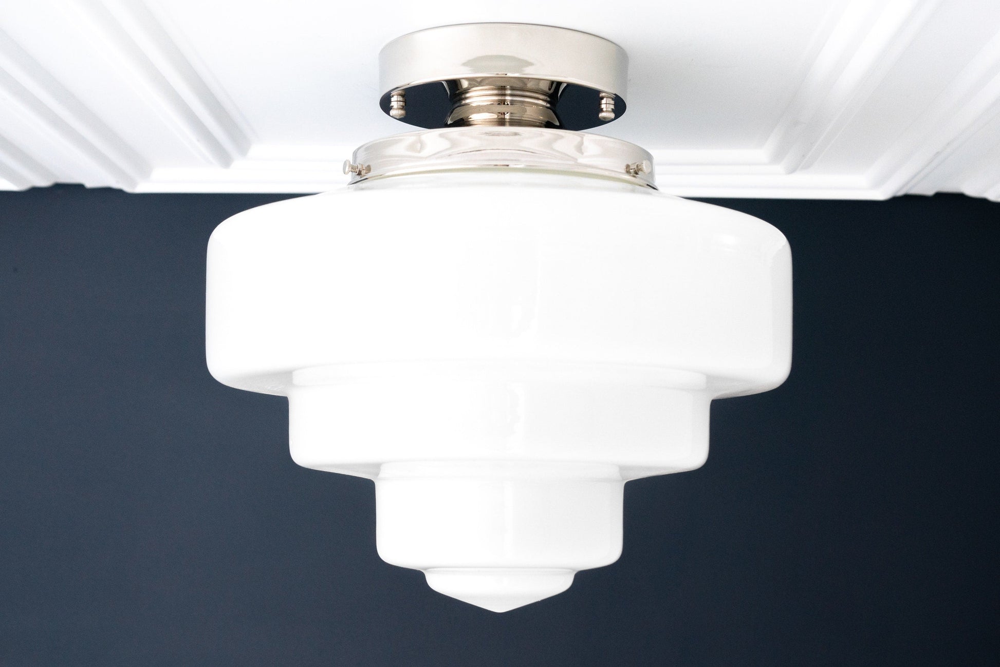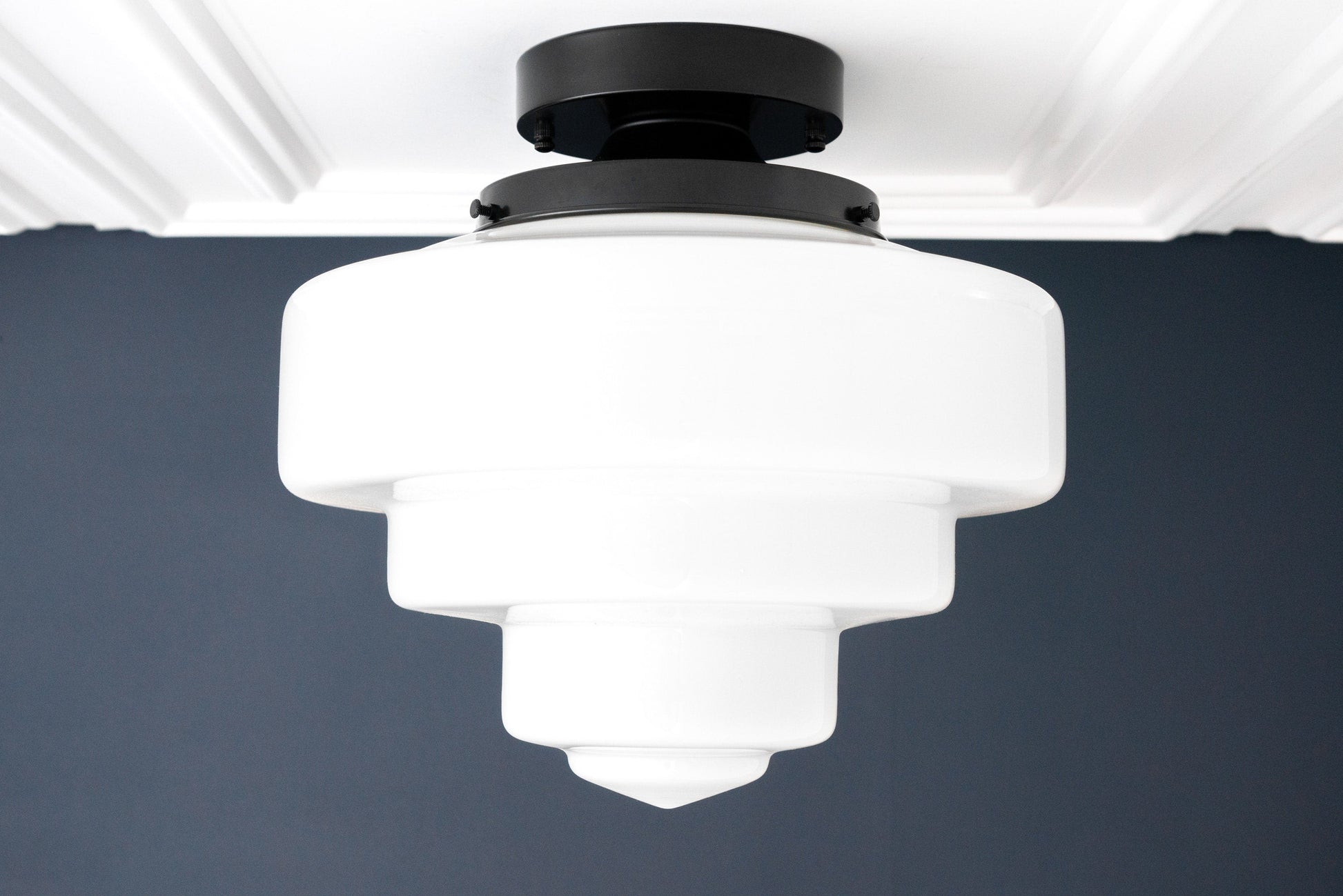 Wedding Cake Light - Large Ceiling Light - 12 Inch Globe - Light Fixture - Milk Glass Light - Art Deco Lamp - Model No. 7458