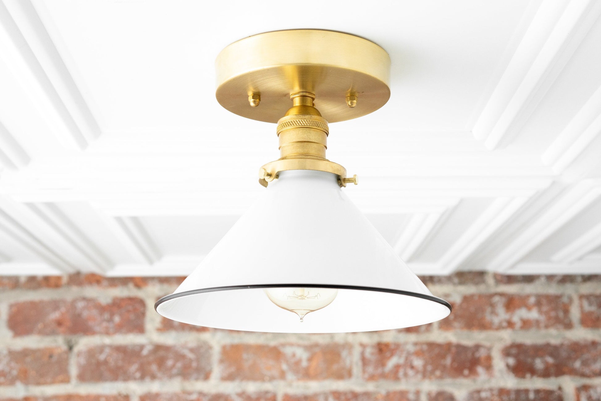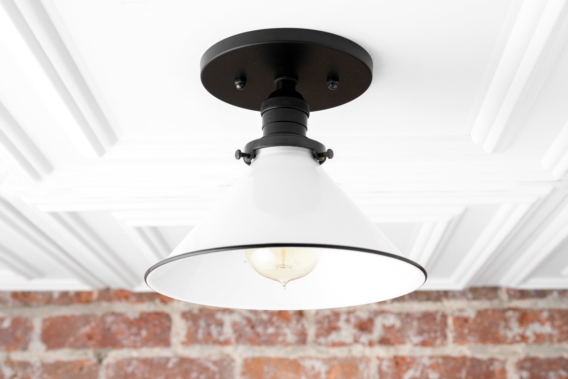 White Cone Shade Ceiling Light - Farmhouse Lighting - Modern Industrial Lighting - Hardwired Light Fixture - Model No. 5271