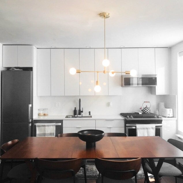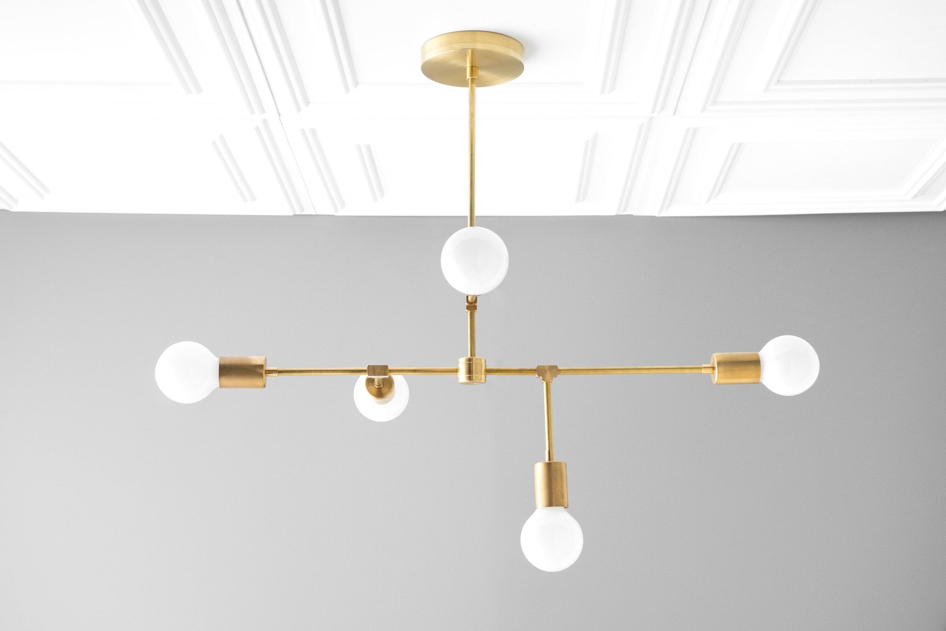 This modern 5 bulb chandelier features multiple arms for a soft dimensional look.