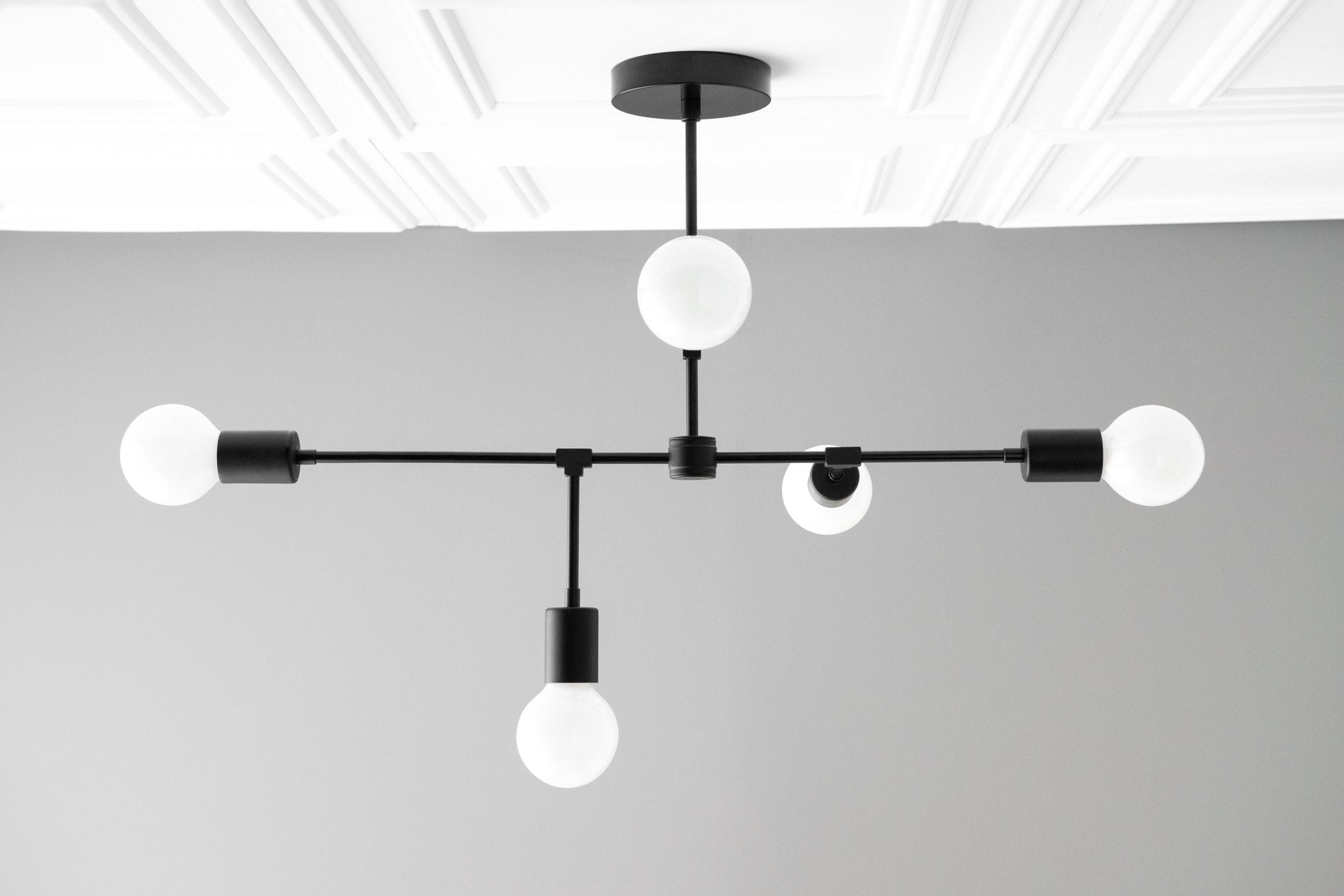 5 Bulb Chandelier - Hanging Lamp - Black Chandelier - Large Bulb Light - Modern Lighting - Light Fixture