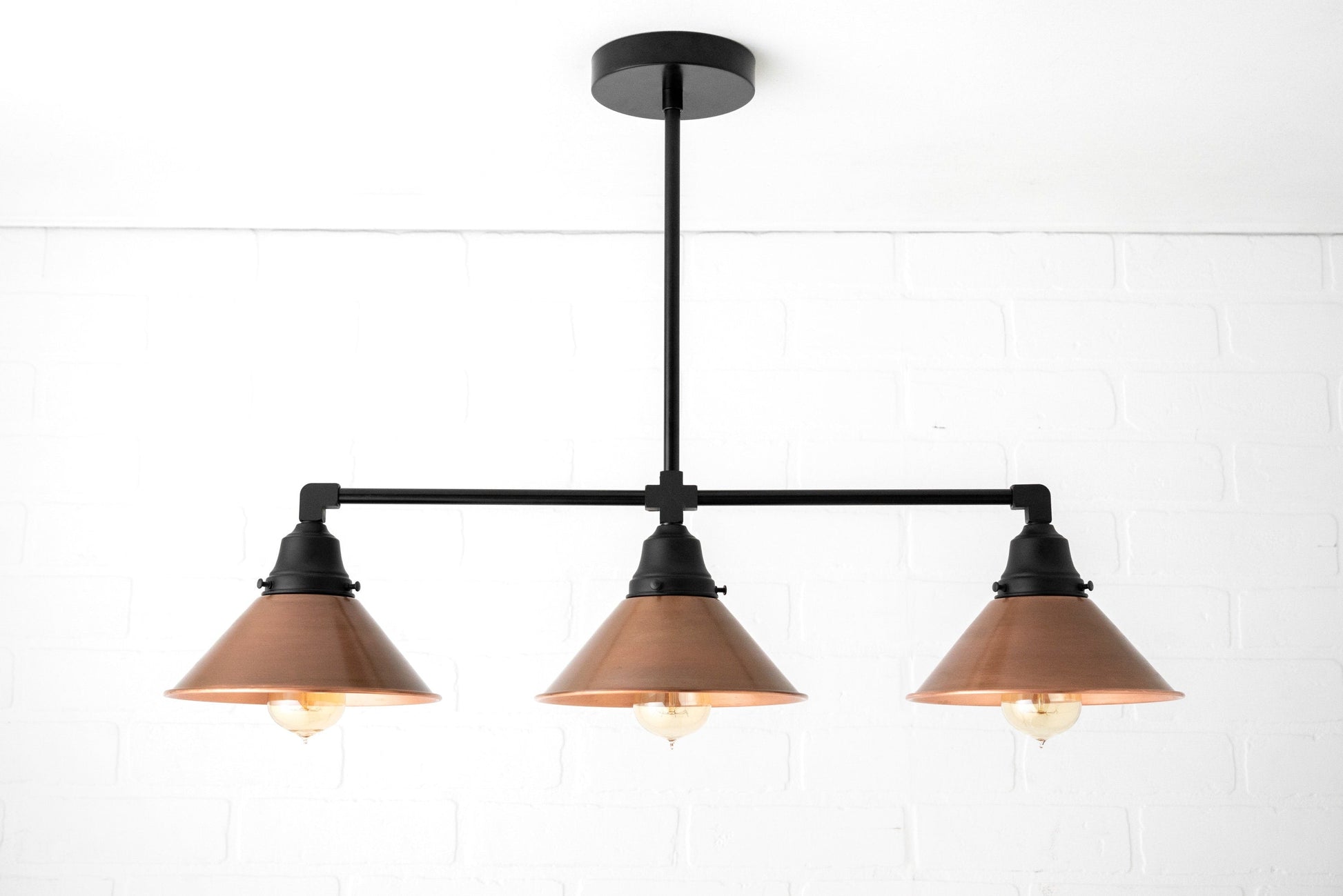 Aged Copper Shade - Three Shade Island Light - Pendant Chandelier - Copper Lighting - Hanging Light - Billiards Light - Industrial Kitchen