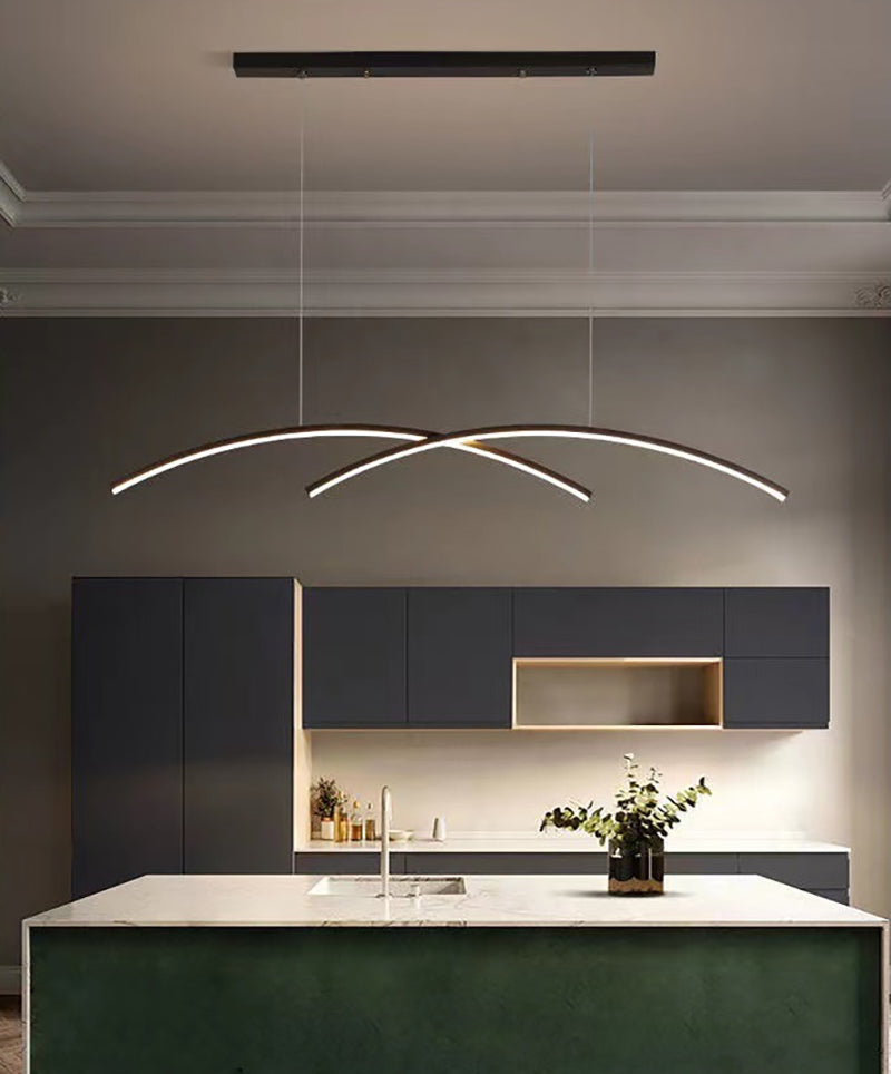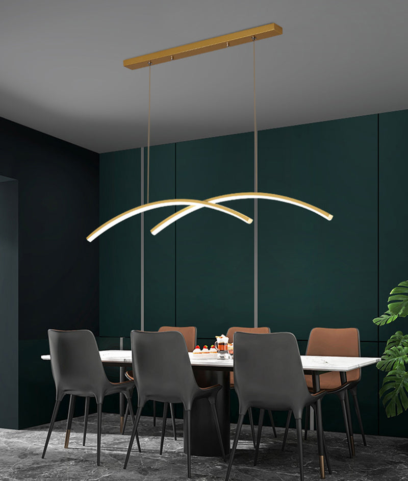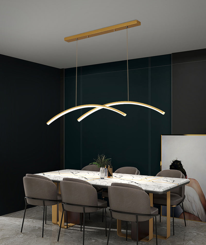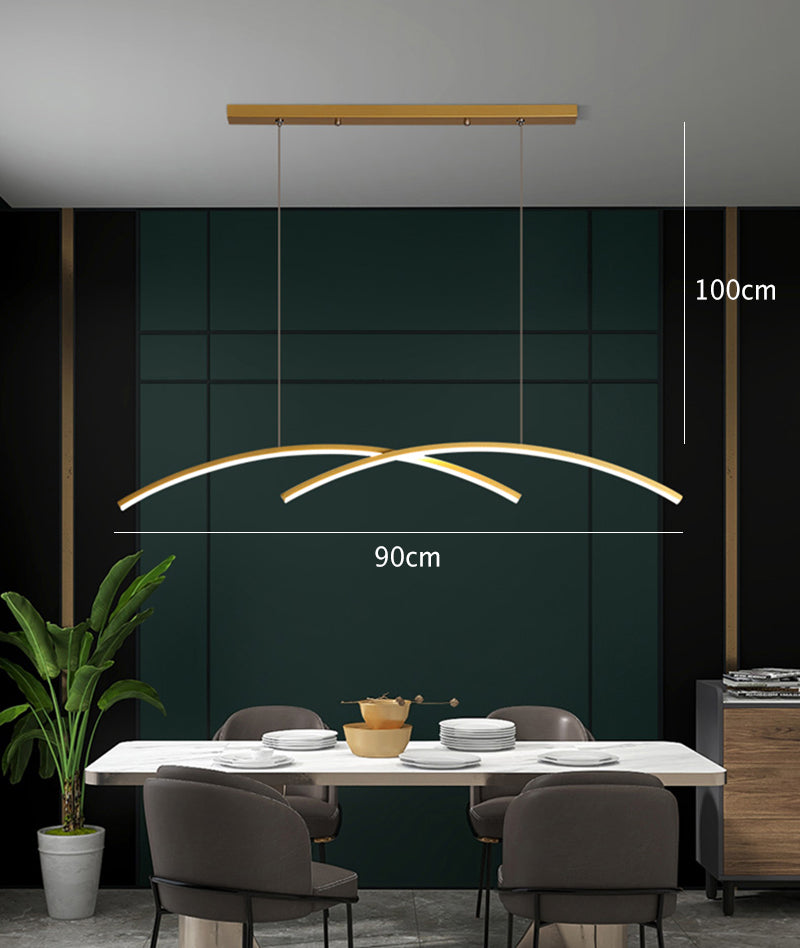 Made with aluminum coated in gold or black, this sleek nordic hanging light comes in a soothing arch shape. This timeless piece of art will be an accent piece adding peacefulness and character to your dining room and living room or any space you have in mind.