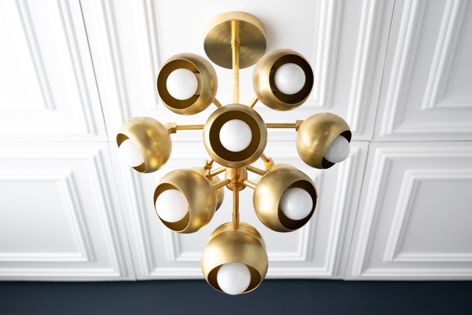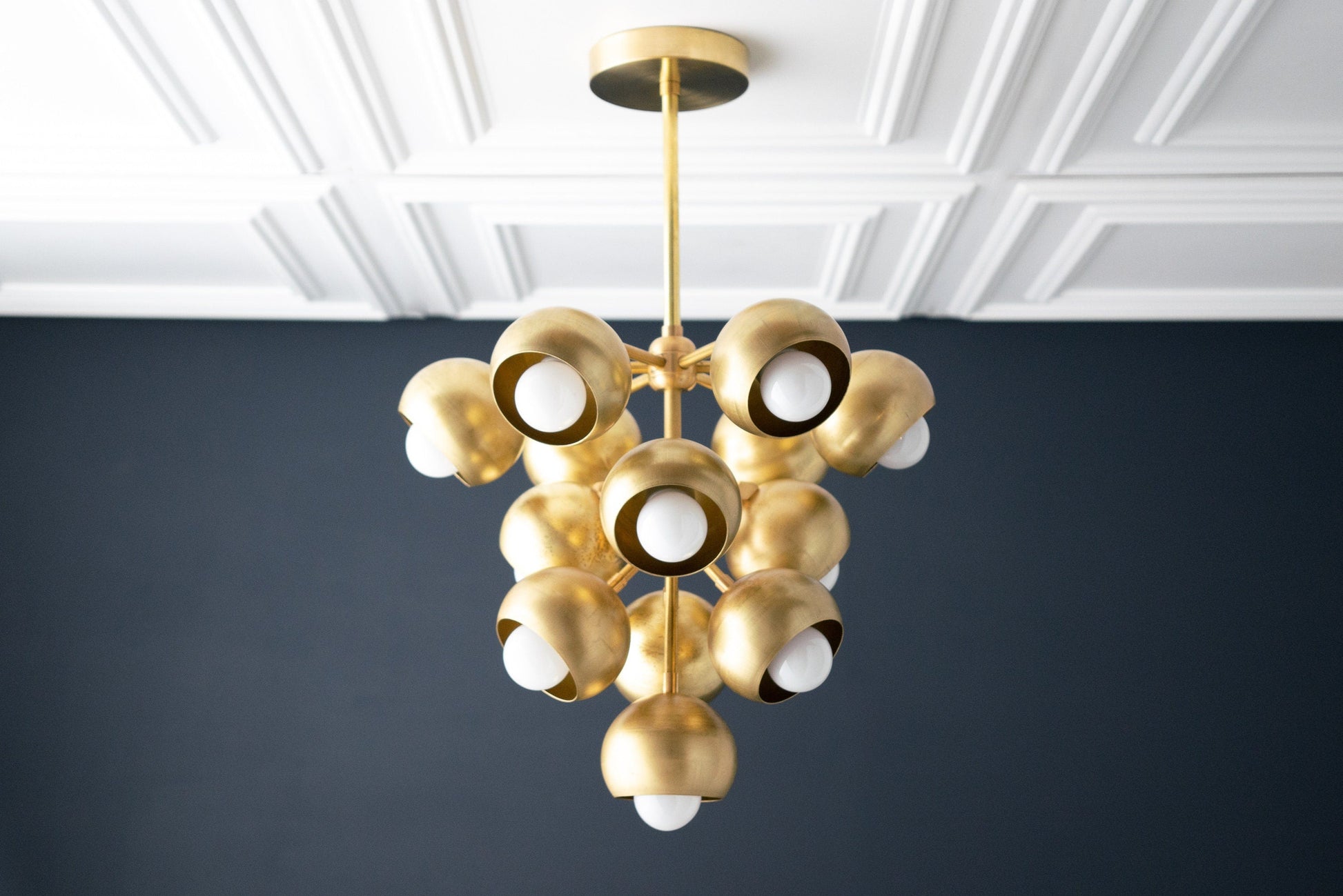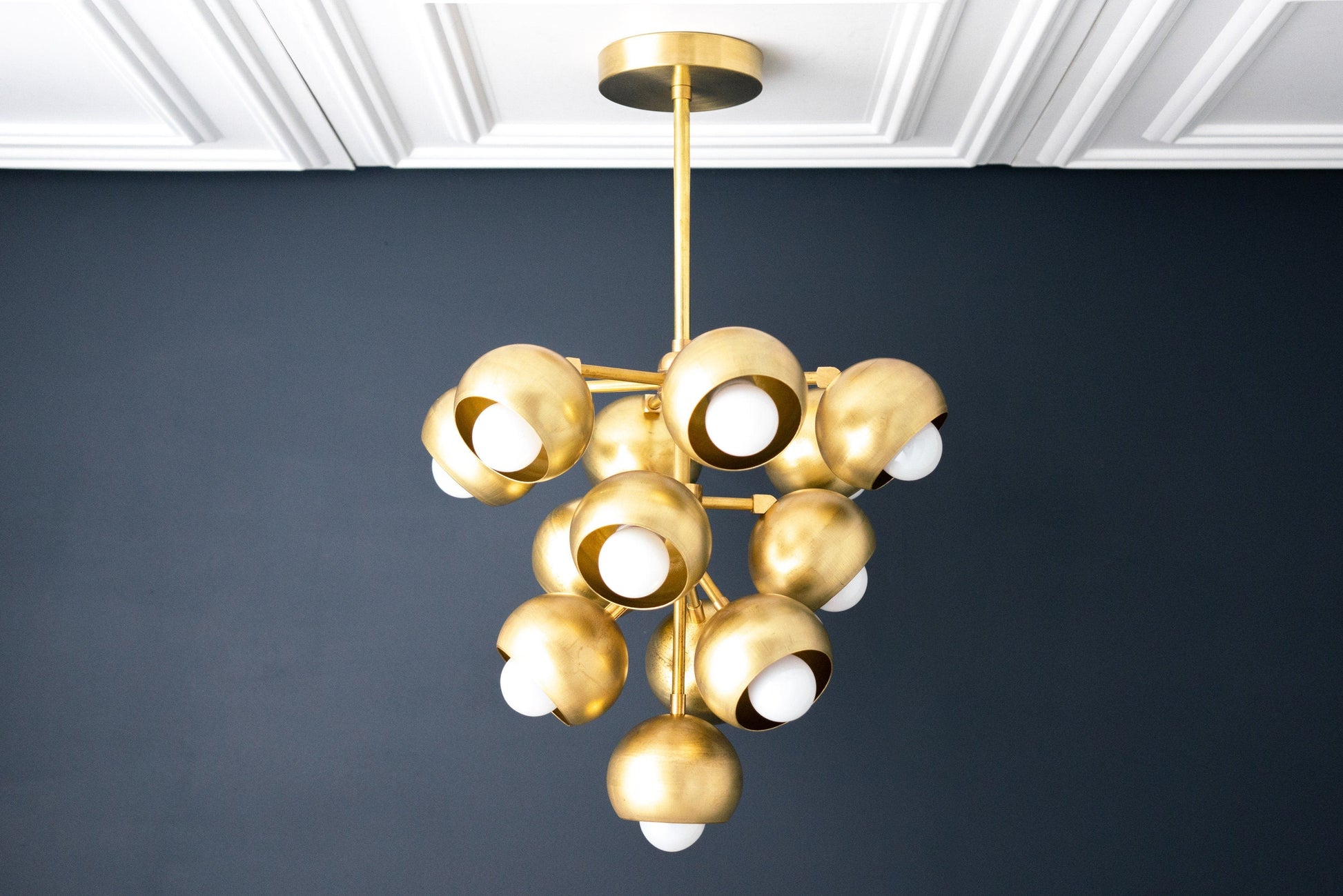 13 Brass Dome Chandelier - Modern Chandelier - Cluster Chandelier - Hanging Lights - Stairway Light - Unique Light - Model No. 3198