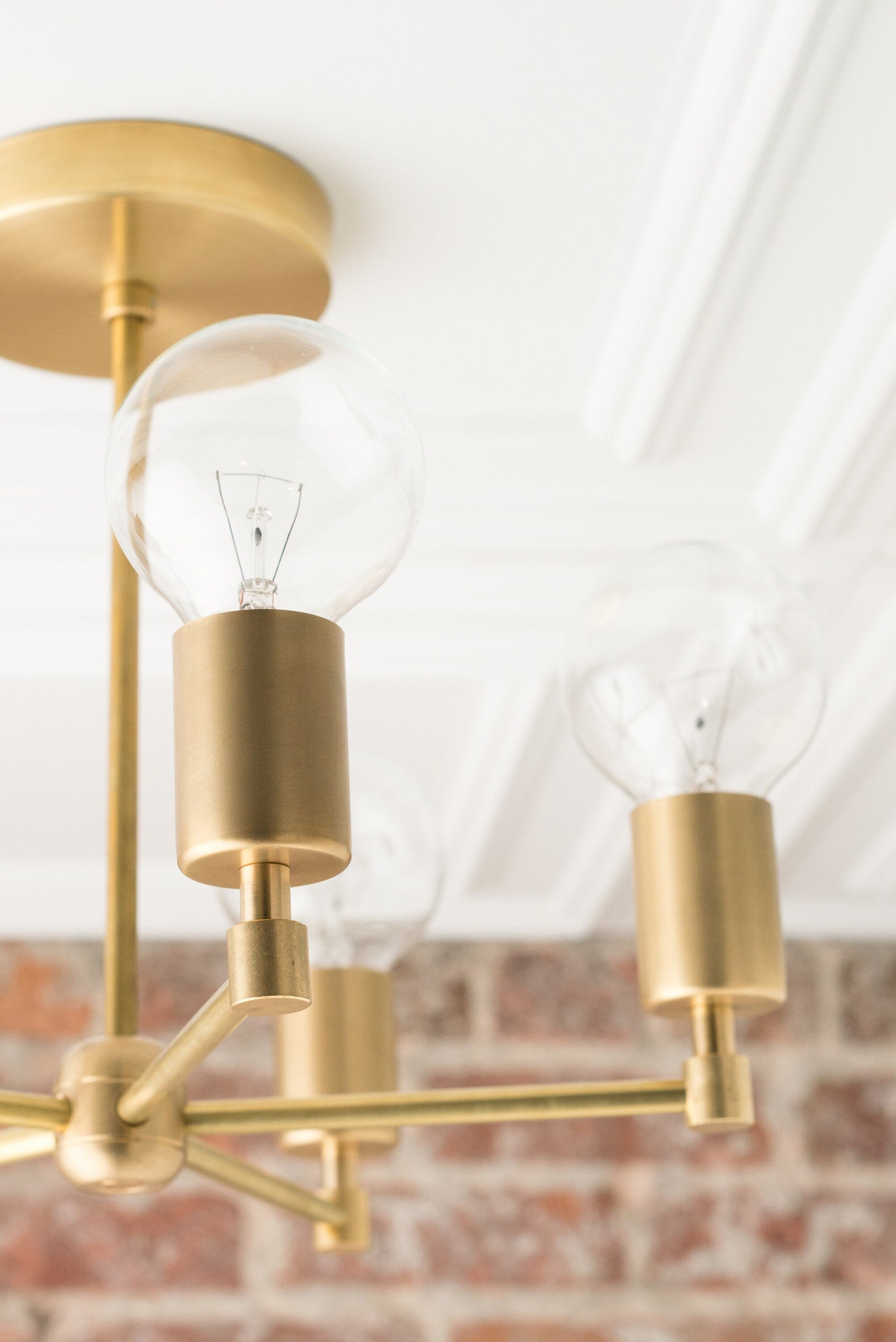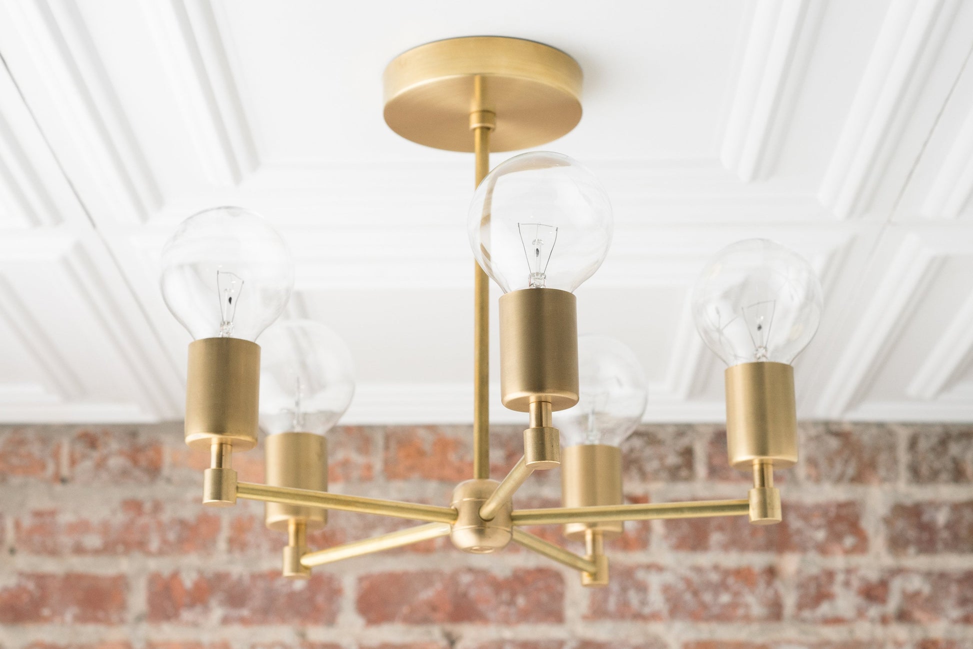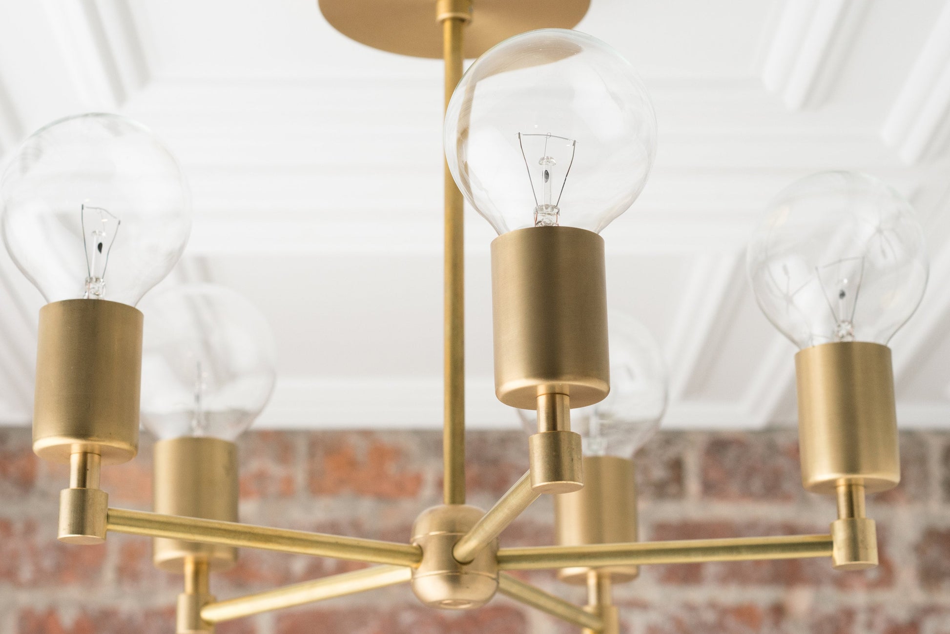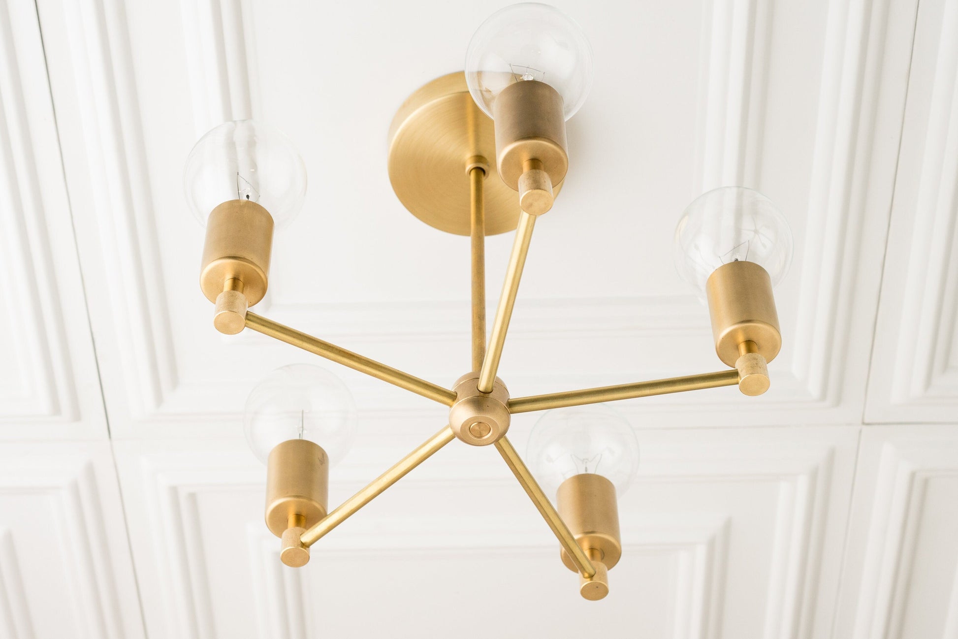 Brass Chandeliers - Gold Ceiling Light - Geometric Fixture - Mid Century Modern Lights - Model No. 7098