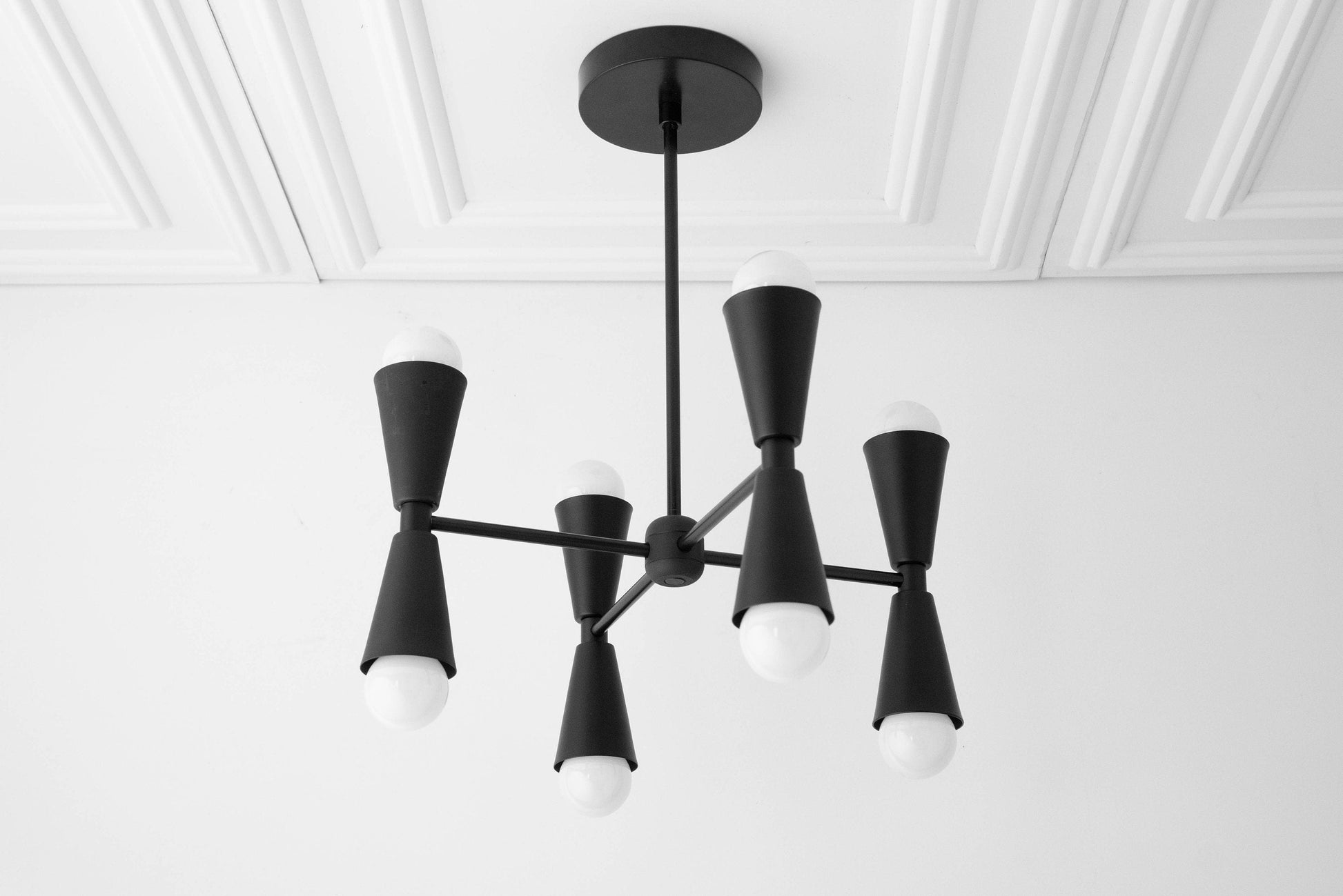 Chandelier - Black Brass - Geometric Chandelier - Handing Light - Ceiling Mount - Mid Century Lighting - 1950s - Modern Chandelier