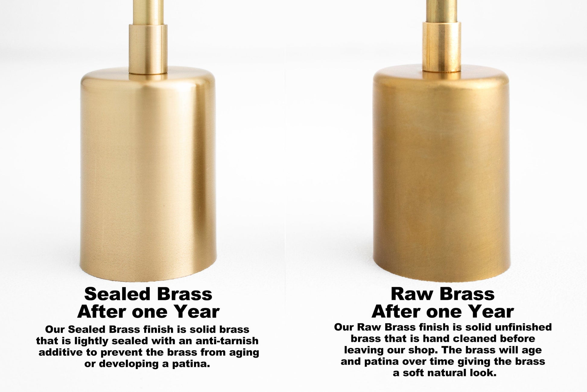 •Raw Brass - features solid unfinished brass that is hand cleaned before leaving our shop. The brass will age and patina over time giving the finish a soft natural look.
