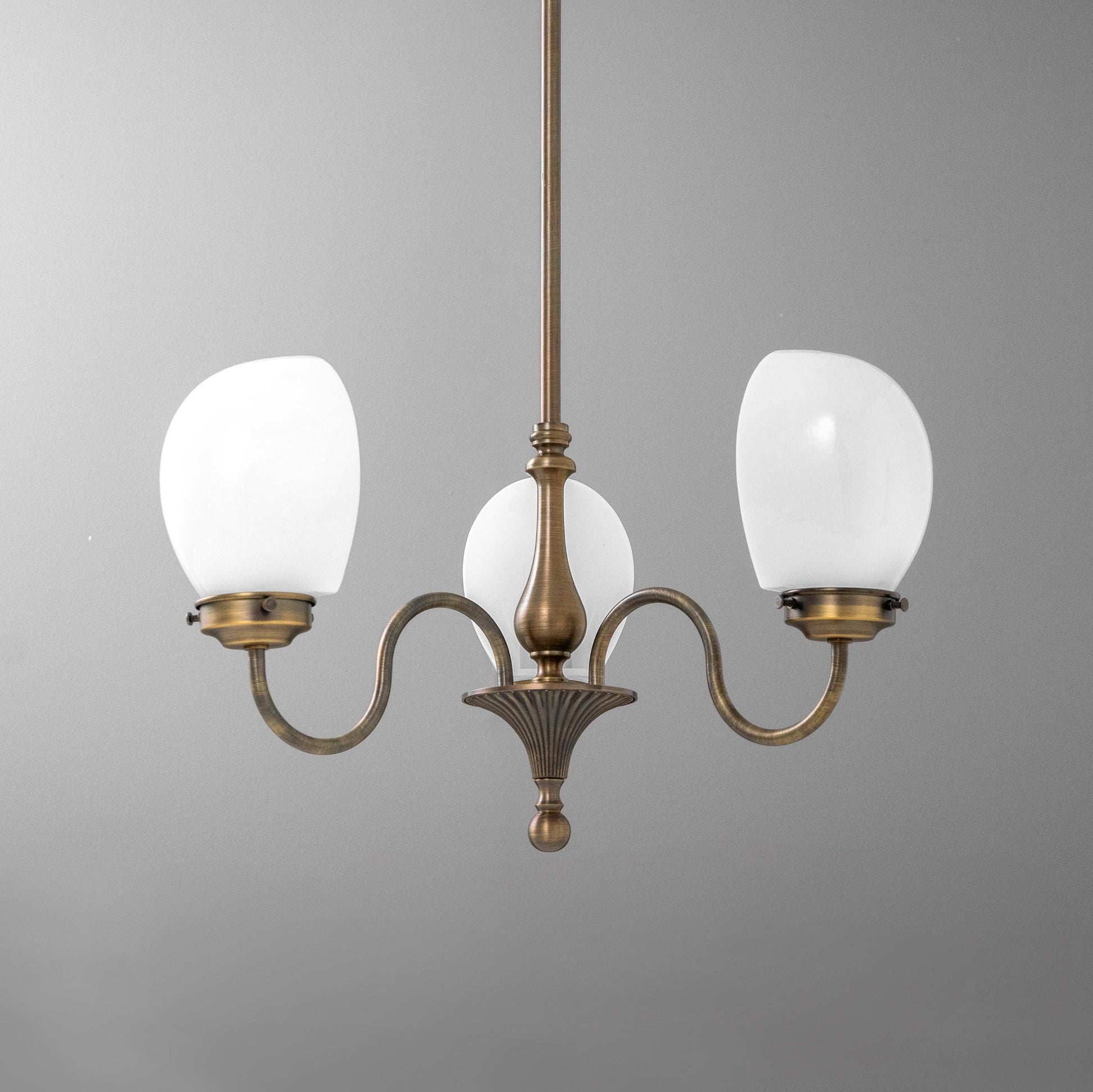 Introducing our elegant three-light chandelier, designed to elevate any room with its classic charm and sophisticated style. This stunning fixture features gracefully curved arms and an antique brass finish, perfectly complemented by the soft, frosted glass shades. Ideal for dining rooms, living areas, or entryways, this chandelier offers both timeless beauty and functional illumination. Enhance your home’s ambiance with this exquisite piece, blending traditional craftsmanship with modern aesthetics.