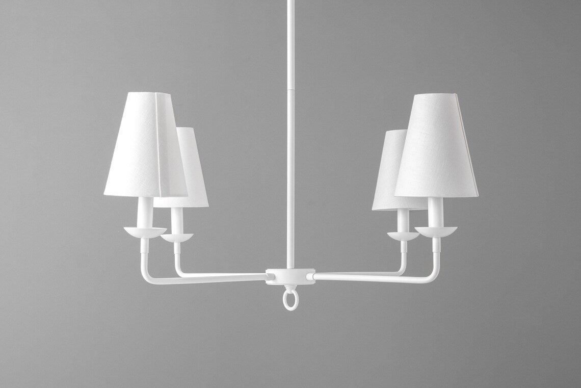 This chandelier boasts four tapered fabric shades that softly diffuse light, creating a warm and inviting ambiance. Perfect for dining rooms, living areas, or entryways, this chandelier adds a touch of contemporary charm while maintaining a timeless appeal.