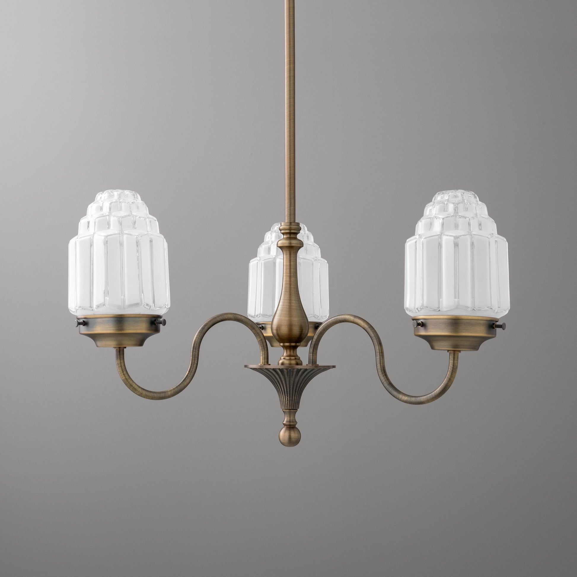 Elevate your home's ambiance with this stunning three-light chandelier, featuring an antique brass finish and intricately designed glass shades. The elegant, tiered glass shades evoke a sense of vintage charm, reminiscent of classic architectural details, while the gracefully curved arms add a touch of traditional sophistication. Perfect for dining rooms, living spaces, or entryways, this chandelier not only provides warm, inviting light but also serves as a timeless focal point. Ideal for those who appreciate a blend of classic elegance and detailed craftsmanship, this chandelier is sure to enhance any decor.