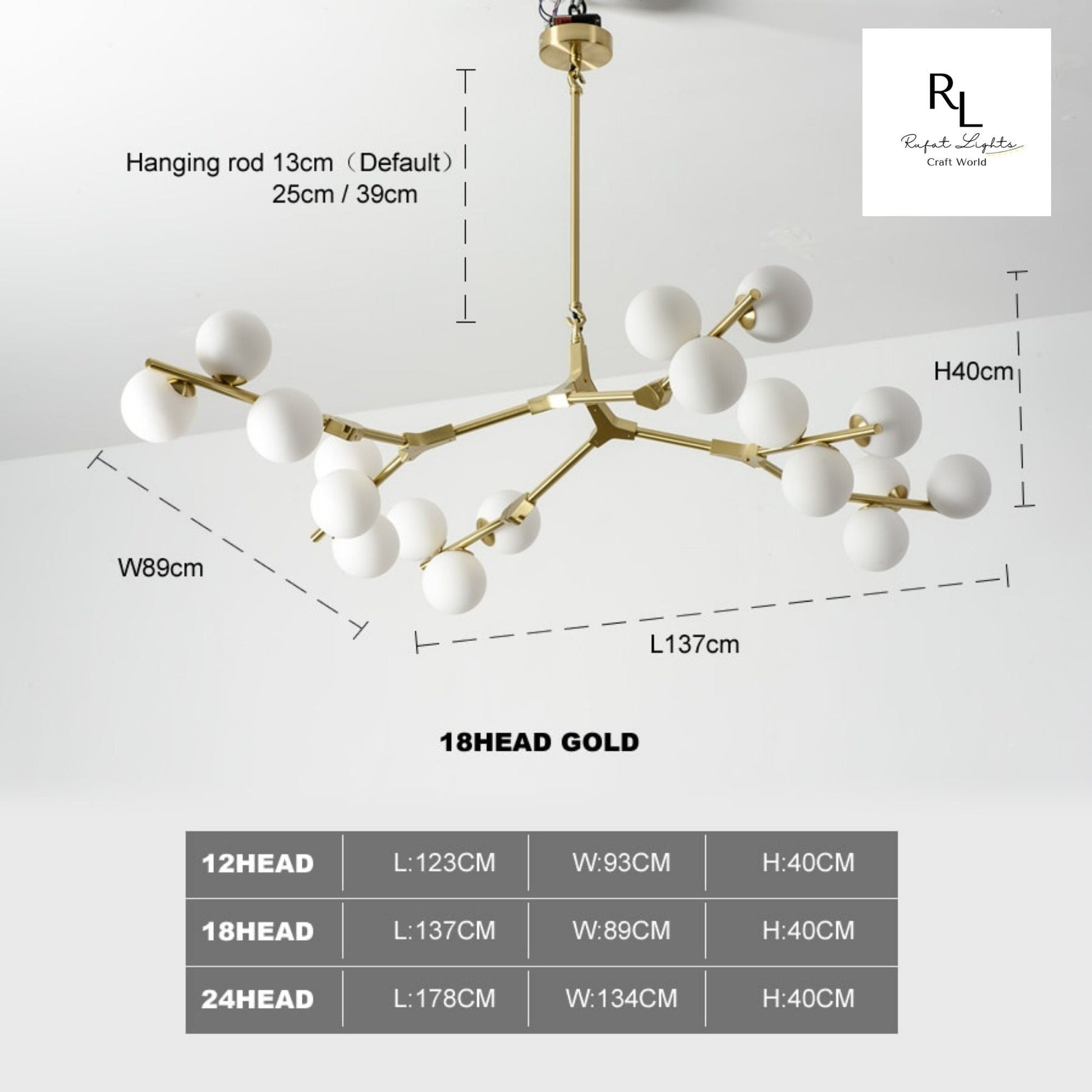 12 bulb model: Height- 40cm; Width- 93cm; Length- 123cm 18 bulb model: Height- 40cm; Width- 89cm; Length- 137cm 24 bulb model: Height- 40cm; Width- 134cm; Length- 178cm |