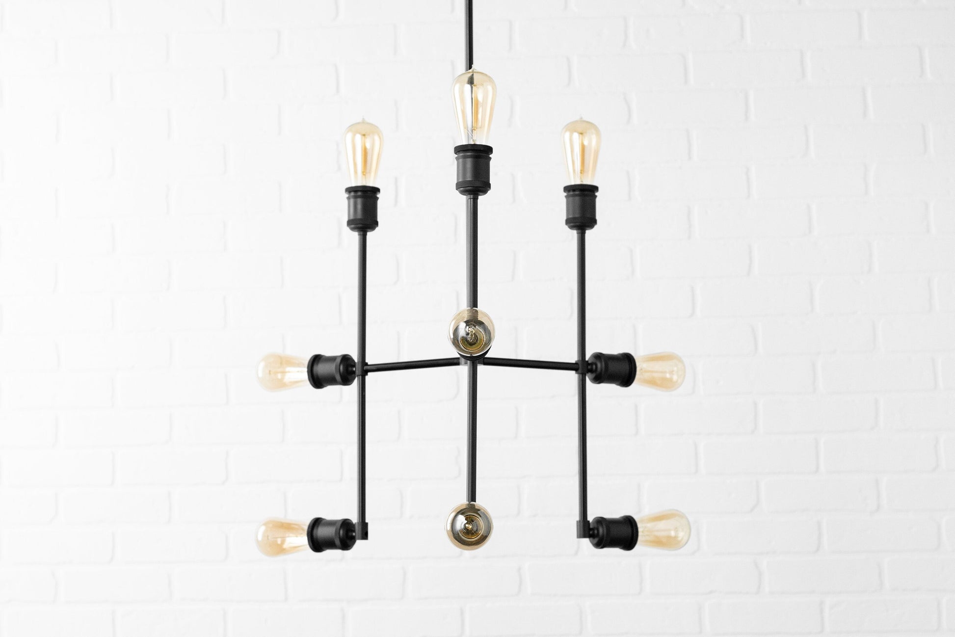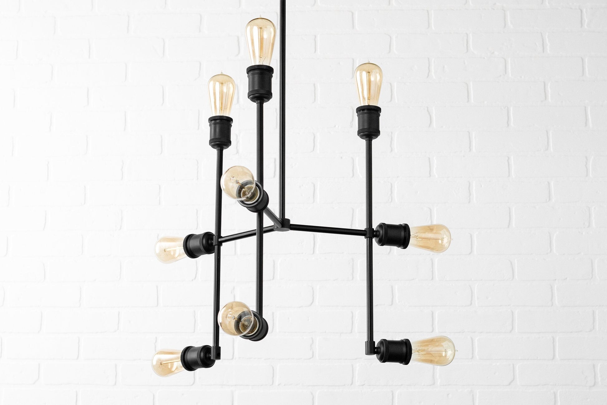 Edison Bulb Fixture - Nine Bulb Chandelier - Hanging Lamp - Industrial Chic - Steampunk Lighting - Black Light Fixture - Model No. 1677