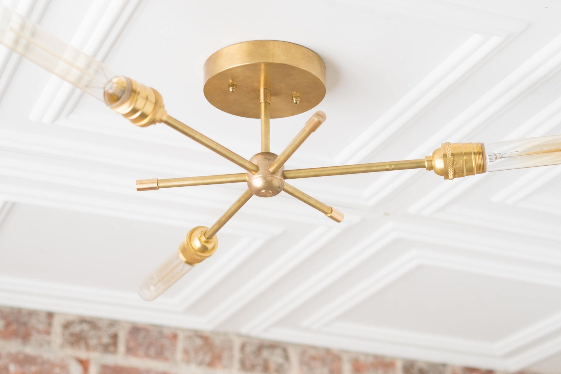 Edison Chandelier - Modern Sputnik Lamp - Industrial Lighting - Brass Modern Fixture - Flush Ceiling Light - Model No. 2486