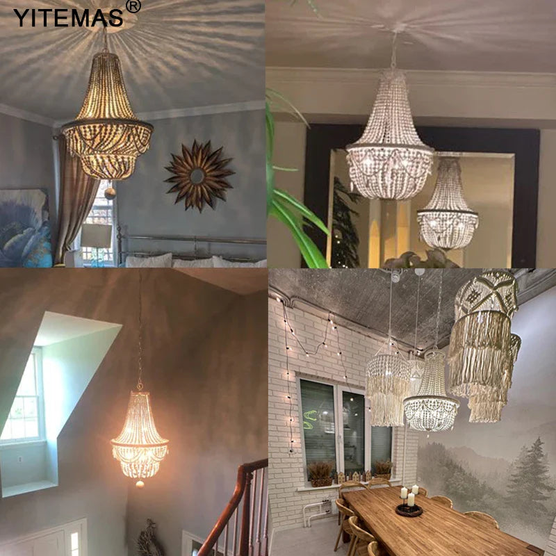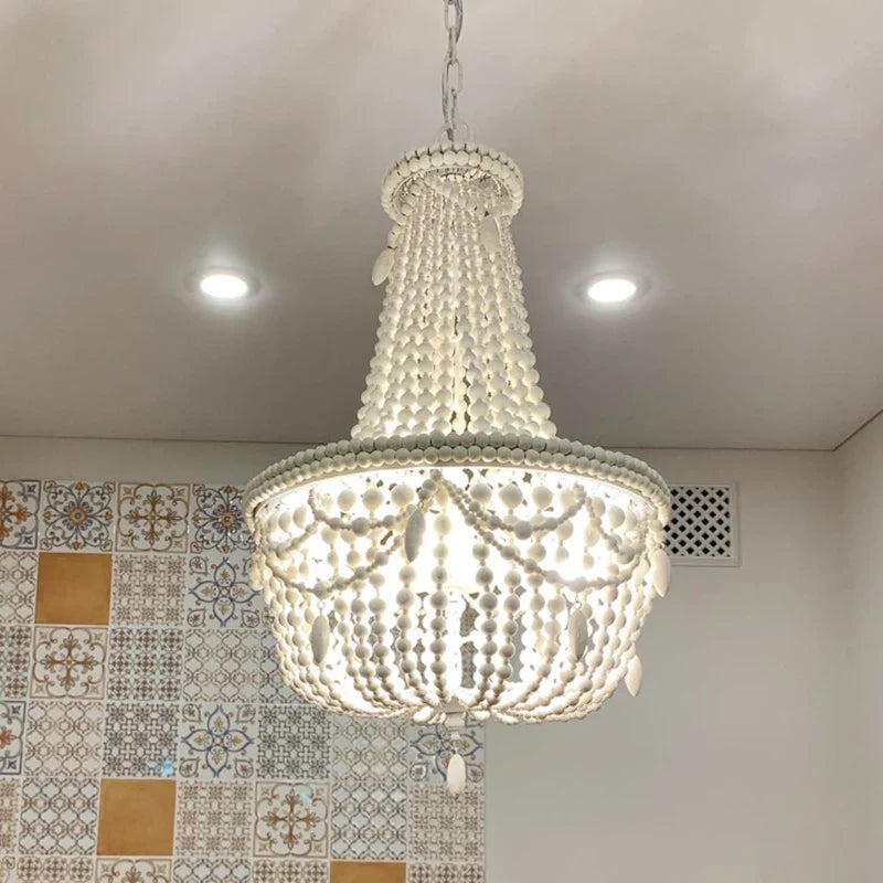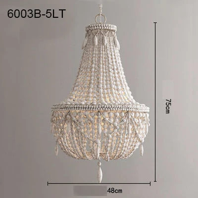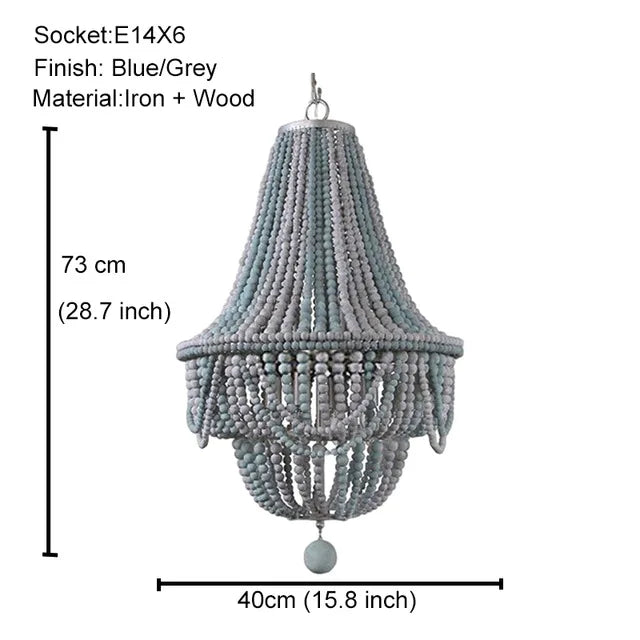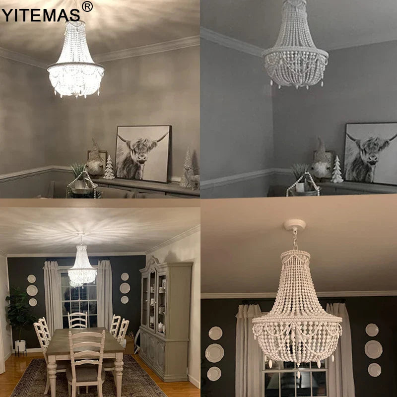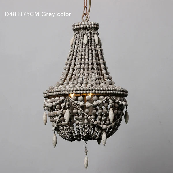 Bring a touch of romance and sophistication with this beaded chandelier, perfect for creating a cozy and welcoming atmosphere. Upgrade your home decor with the French Country Wood Bead Chandelier and experience the magic it brings to your living space.