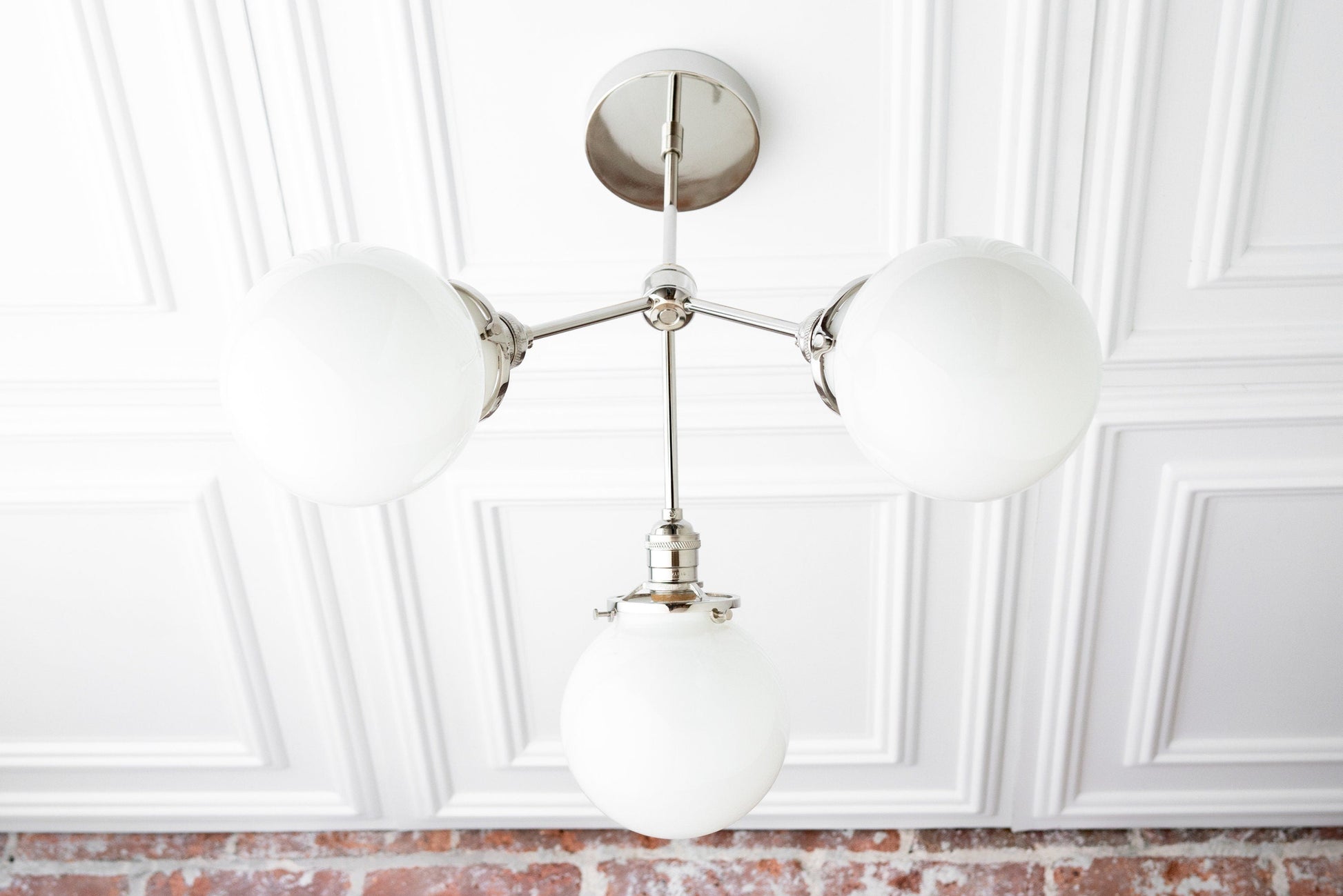 Globe Lights - Modern Ceiling Lamp - Chrome Fixture - Opal Glass - Semi Flush Mount - Modern Hanging Light - Model No. 9174