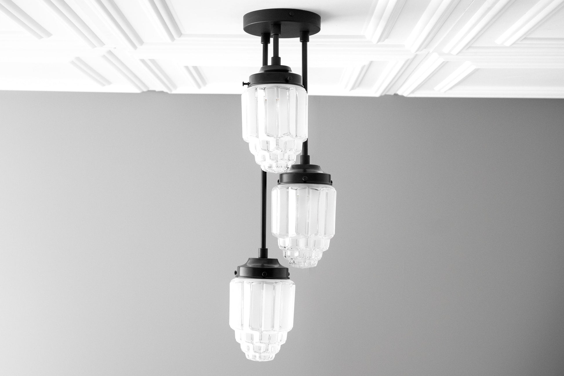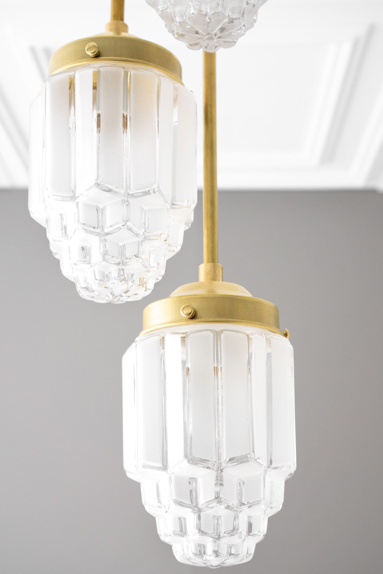 Hanging Lights - Frosted Glass - Skyscraper Shade - Art Deco Chandelier - Ceiling Lights - Unique Lighting - Model No. 7948