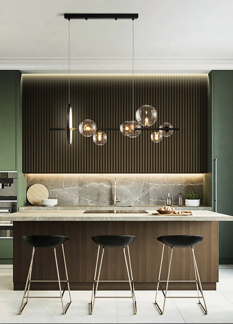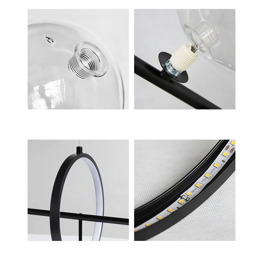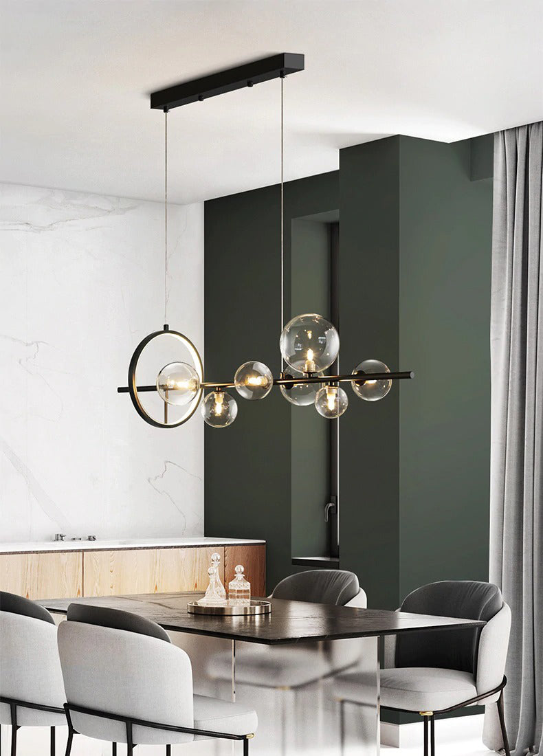 This modern LED chandelier is perfect for any room in your home. With the LED ring and clear globes, it will fit in with any style or decor theme. It’s also incredibly energy efficient, helping save you money on your electricity bills.