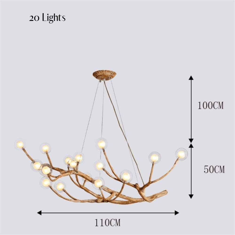 Featuring a wonderful wood look-like replica, the Tree Branch Glass Bubble Chandelier brings a warm luminosity to any space, creating a unique setting for a perfect Home Decor.