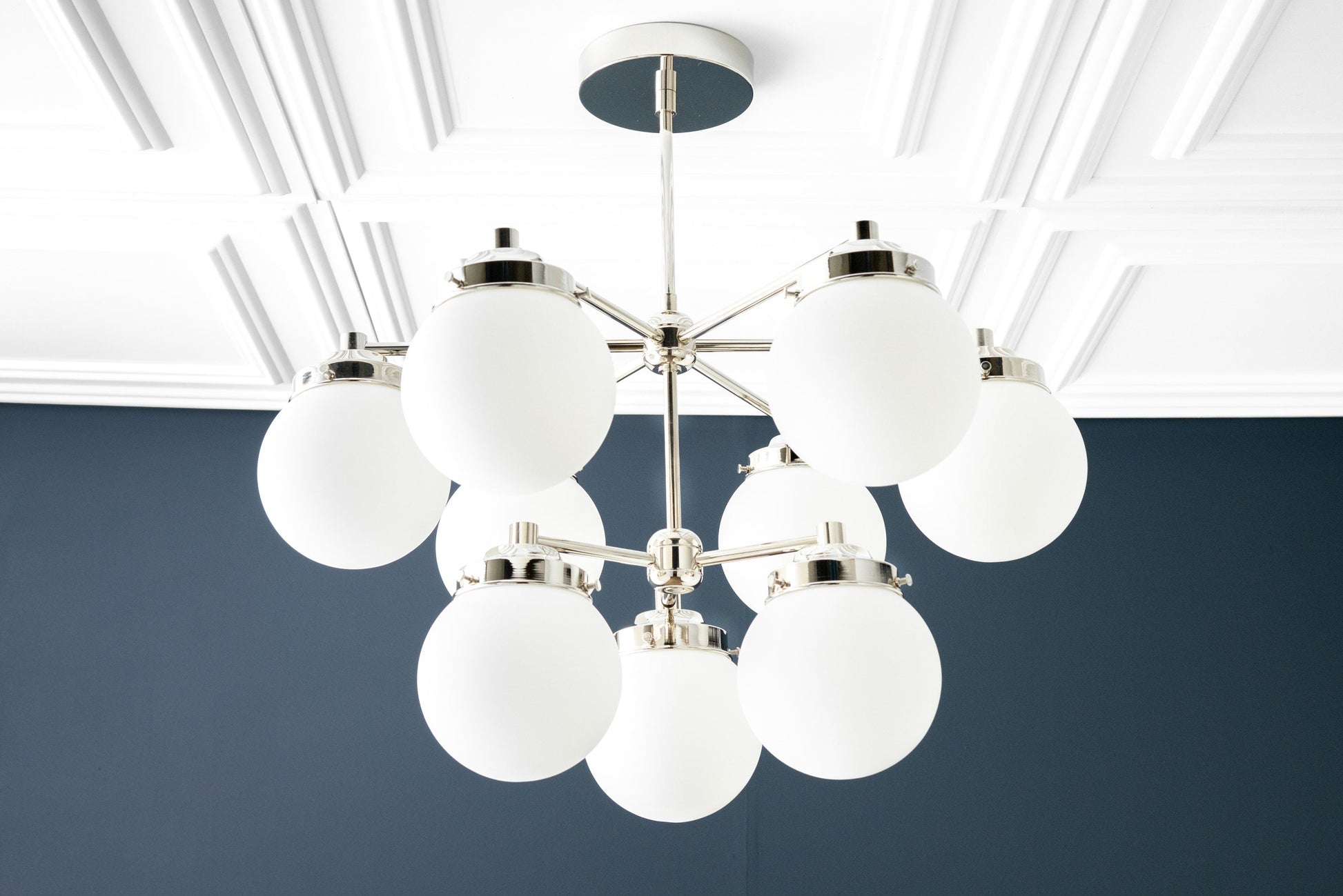 Satin Glass Light - Multi Globe - Large Chandelier - Foyer Light - Globe Chandelier - Light Fixture - Modern Chandelier