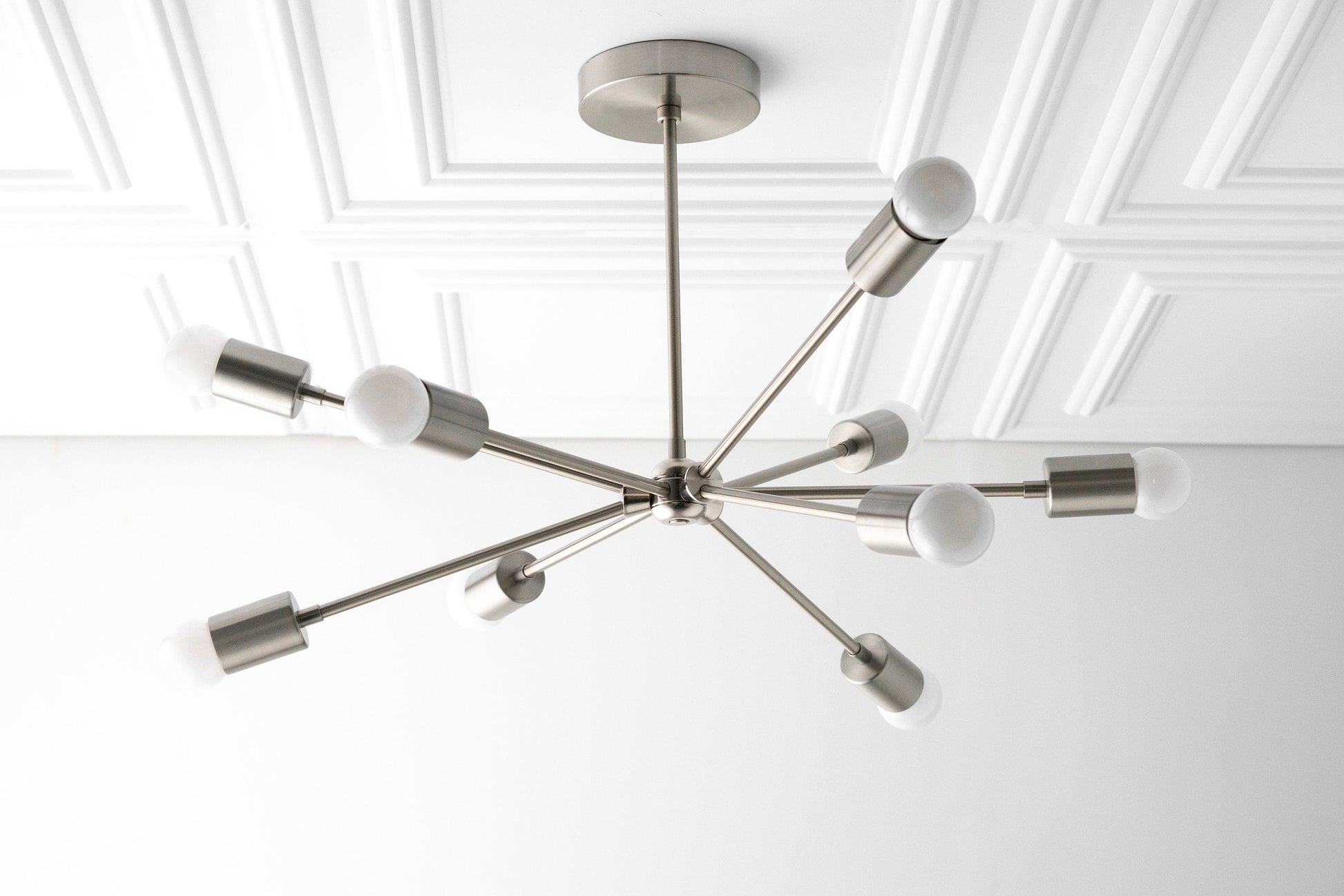 The sputnik lamp was a star in it's day. We have resurrected this mid century design with solid quality brass. This brass has character. It's not too shiny and has a softer look that fits many modern interior designs.
