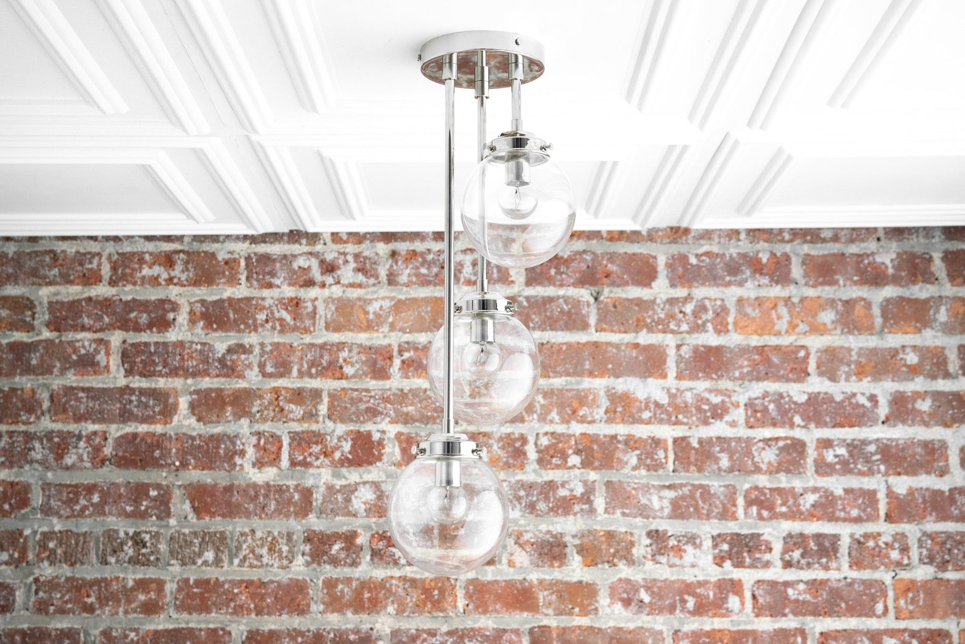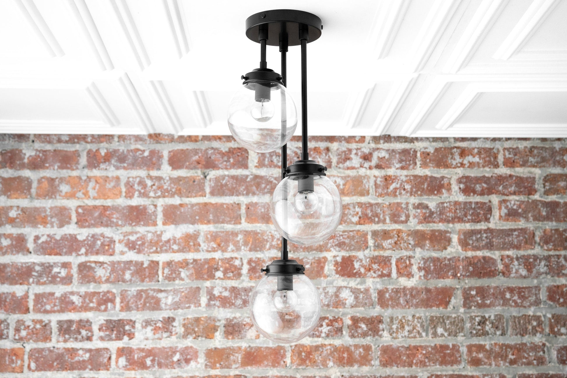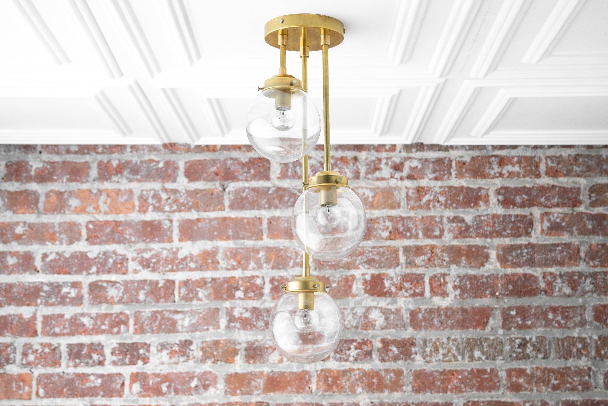 Three Bulb Ceiling Light - Small Globe Light - Ceiling Lamp - Light Fixture - Clear Globe - White Globe - Model No. 0613