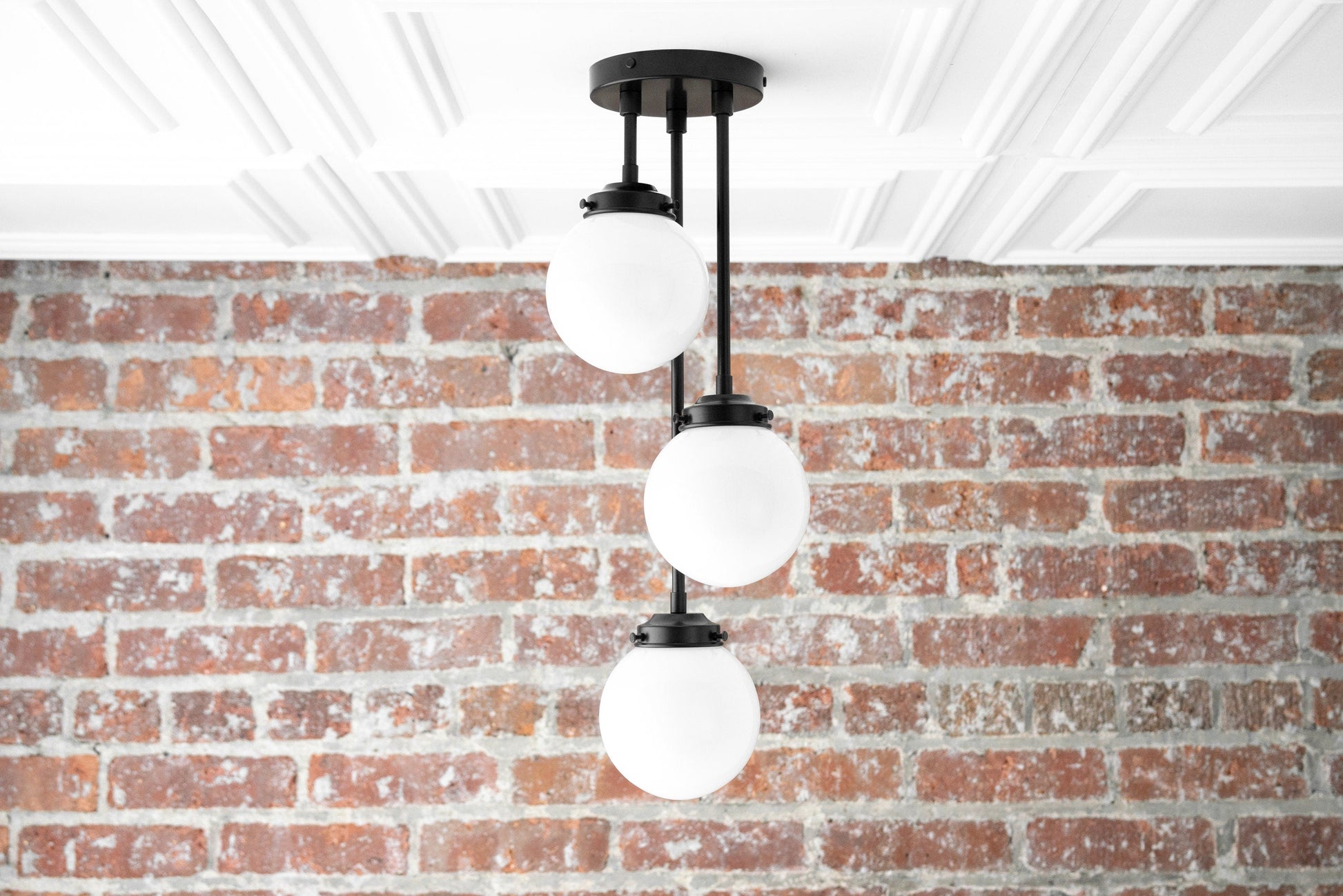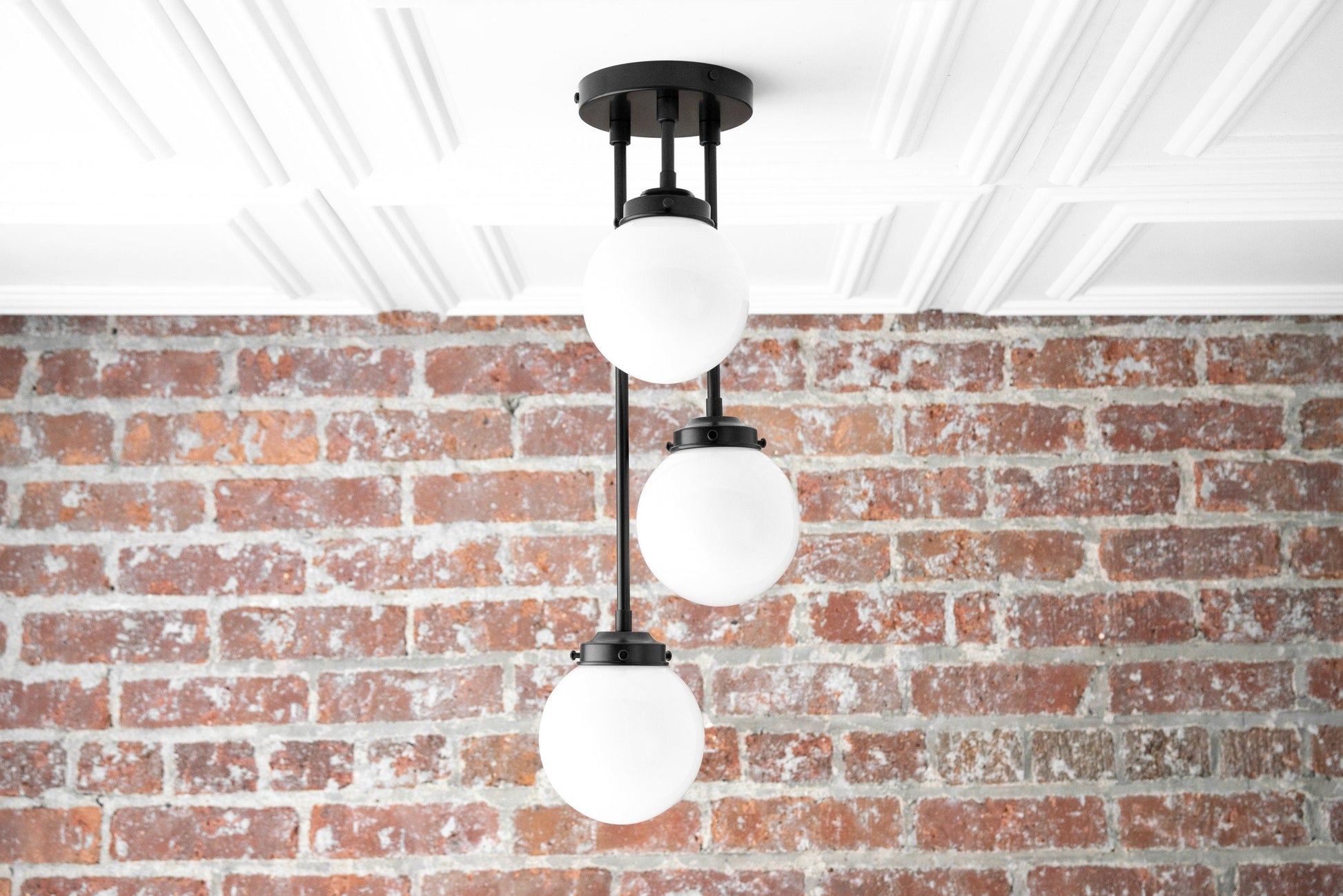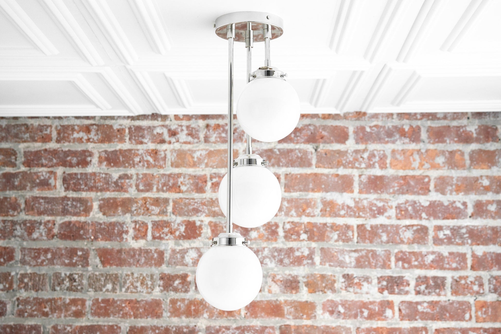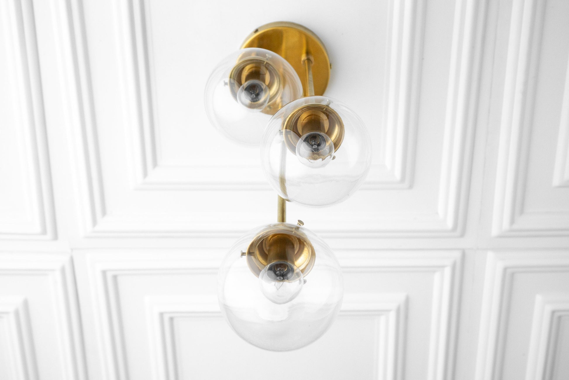 Three Bulb Ceiling Light - Small Globe Light - Ceiling Lamp - Light Fixture - Clear Globe - White Globe - Model No. 0613