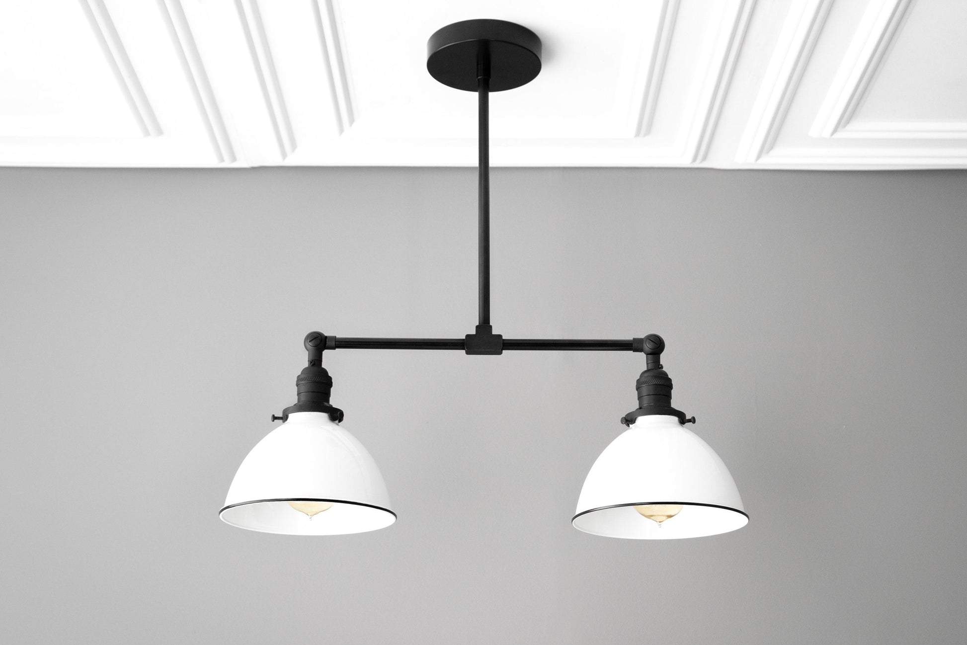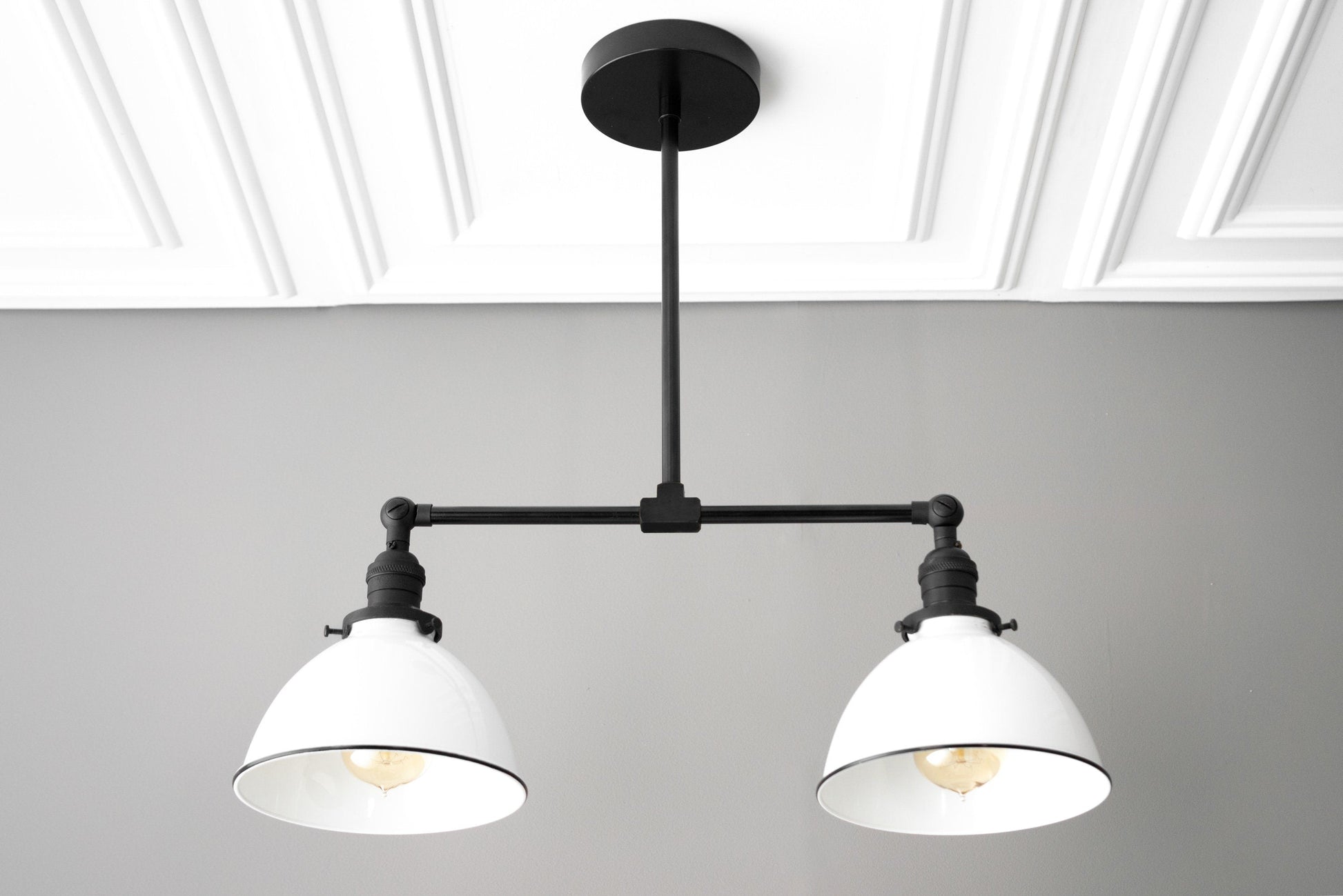 White Shade Light - Farmhouse Lighting - Hanging Light - Pendant Lighting - Farmhouse Chandelier - Black Ceiling Light - Model No. 8234