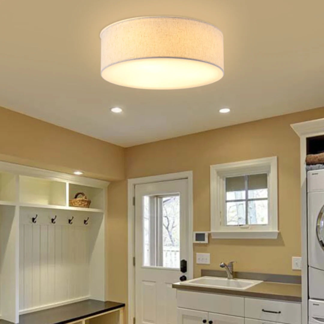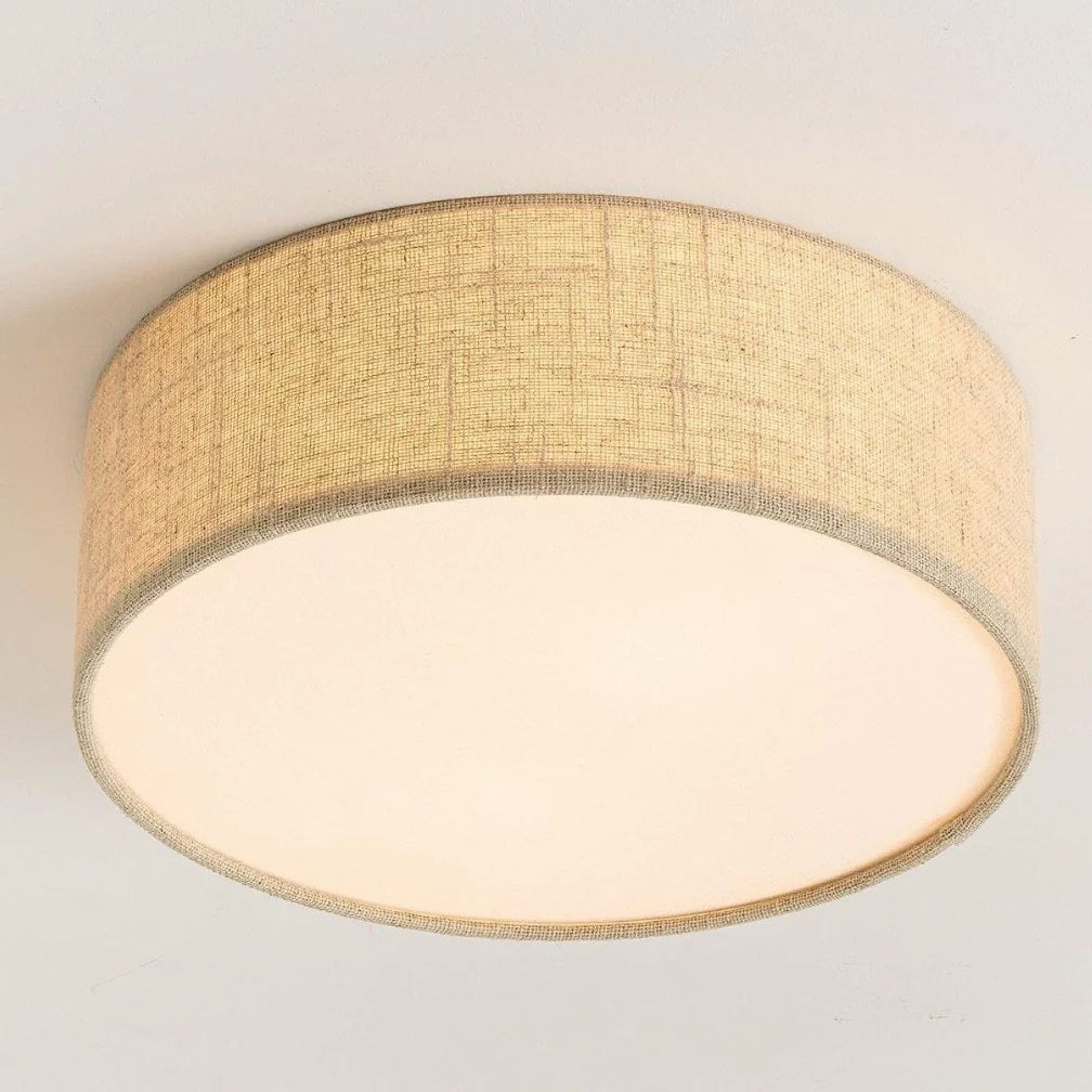 Add understated elegance to your space with this linen drum flush mount. Its iron frame and fabric shade emit a soft, diffused glow, while the low-profile design offers modern sophistication perfect for bedrooms, hallways, and entryways with lower ceilings.