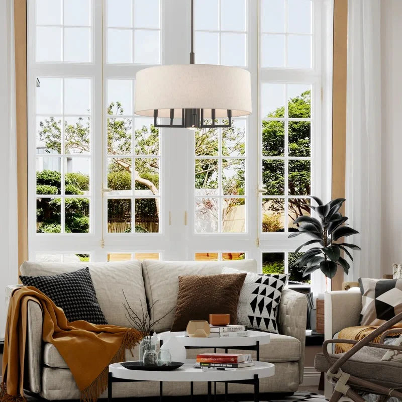 Leif Contemporary 6-Light Fabric Drum Chandelier