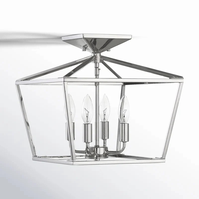 Merging rustic farmhouse and industrial styles, the Clifton ceiling light has a sturdy metal frame with four exposed bulbs for bold illumination. Its open lantern design adds vintage character, radiating light in all directions—ideal for kitchens, dining areas, or entryways.