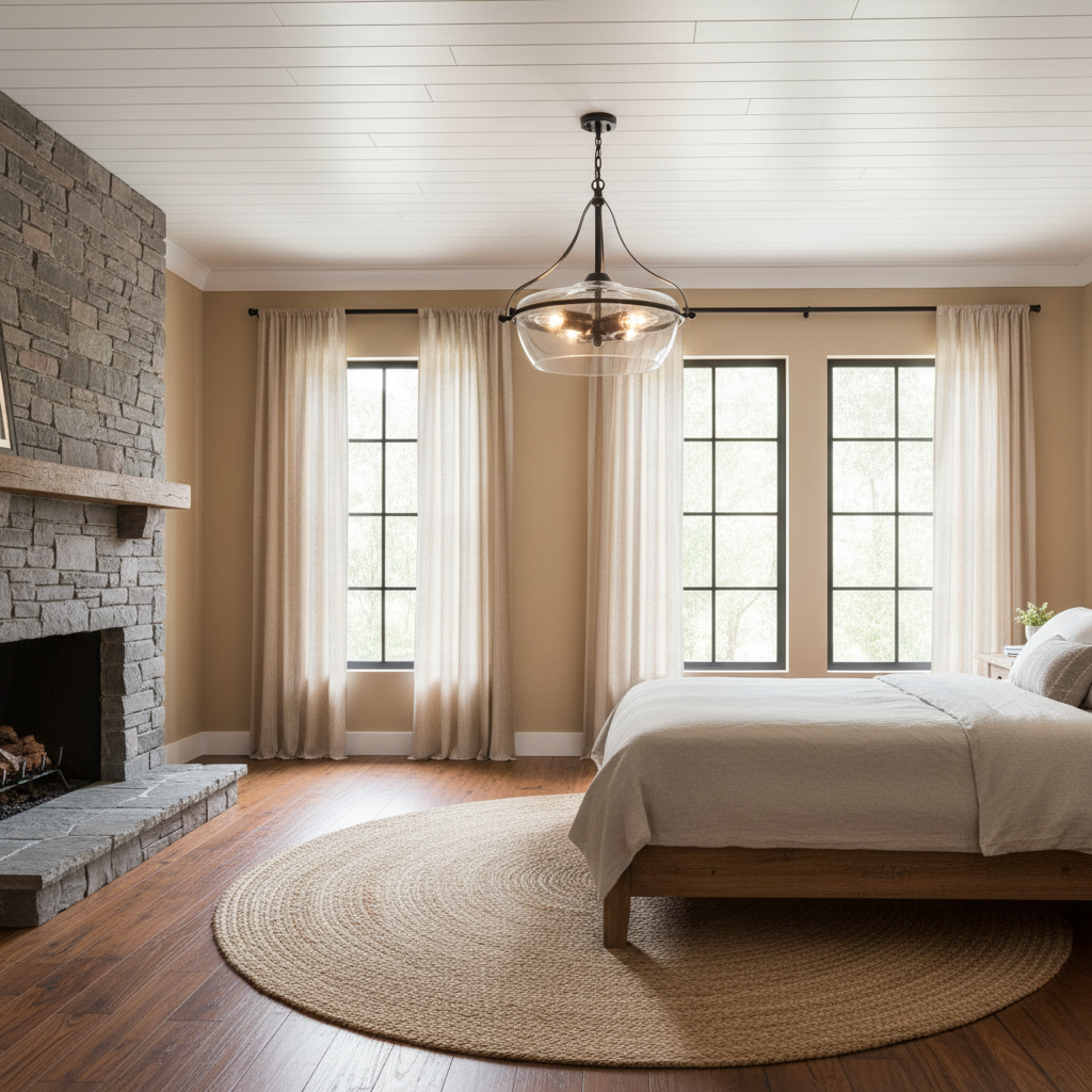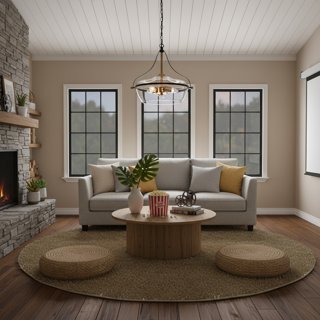 The pendant light showcases three elegant glass bowls supported by a sleek metal frame. It casts warm layered glow, blending retro charm with contemporary flair.