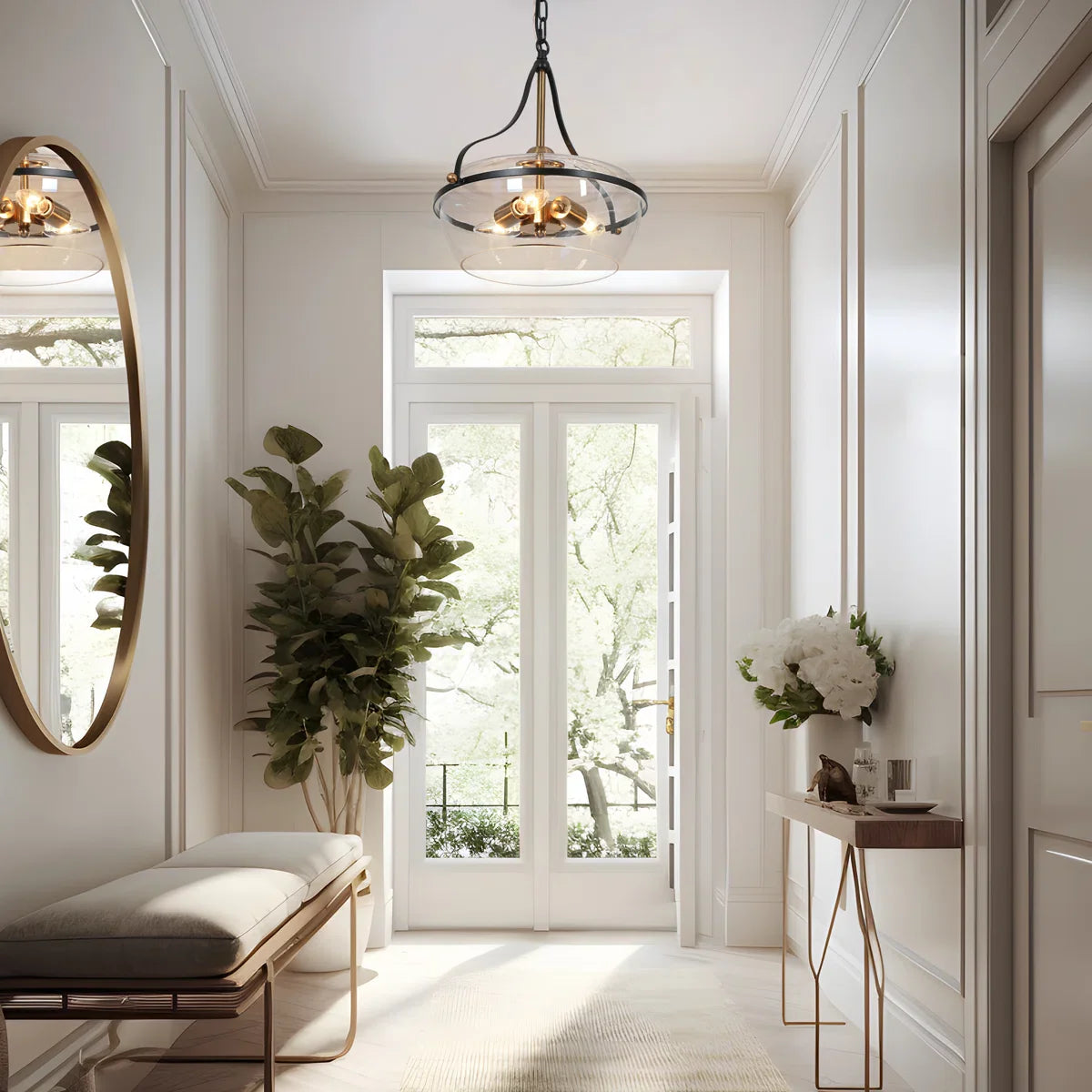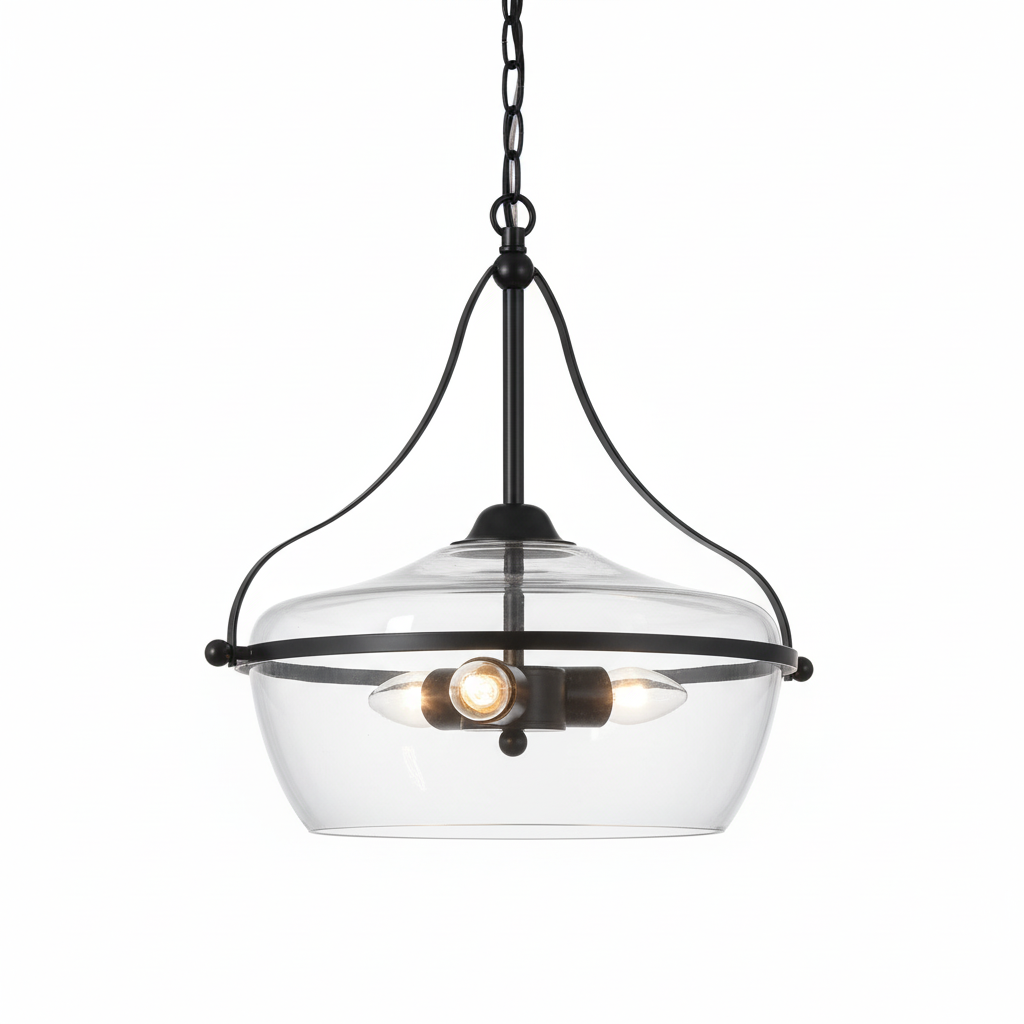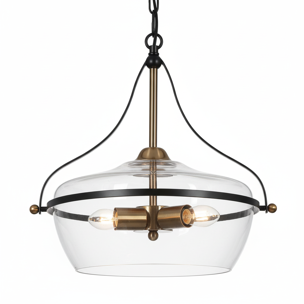 Mid-Century 3-Light Metal Frame Glass Pendant Light