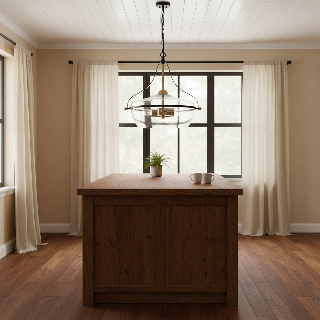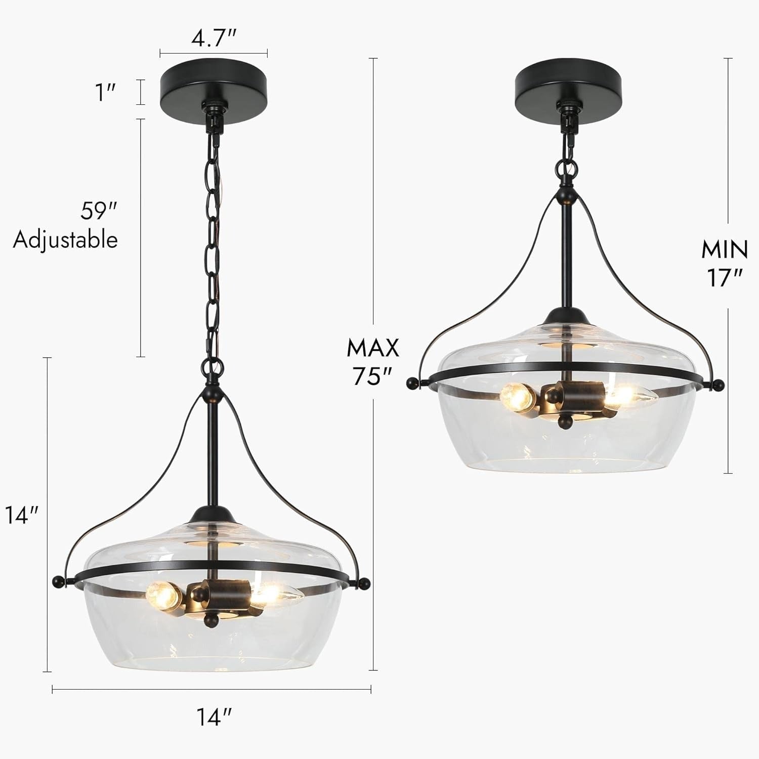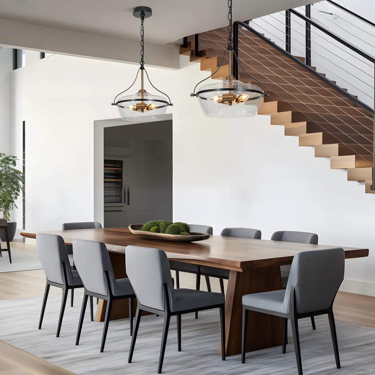 Mid-Century 3-Light Metal Frame Glass Pendant Light