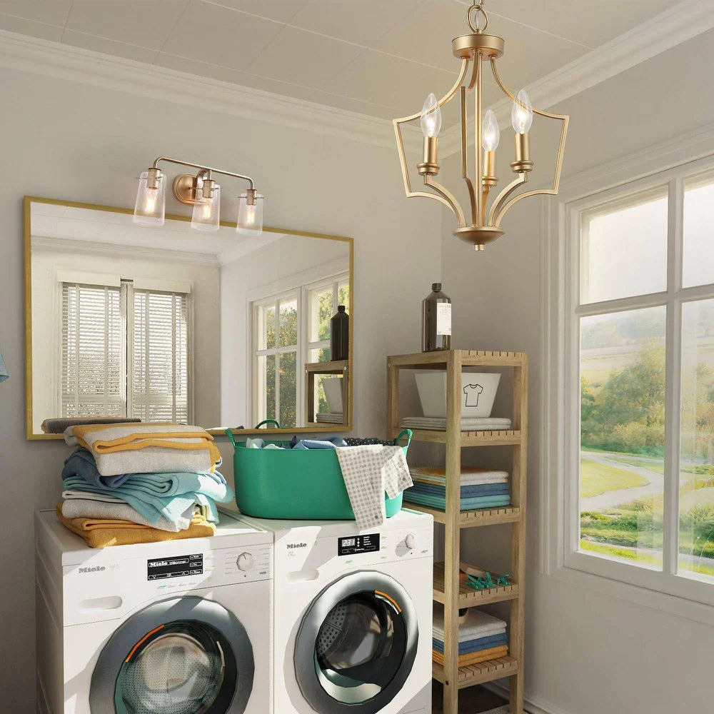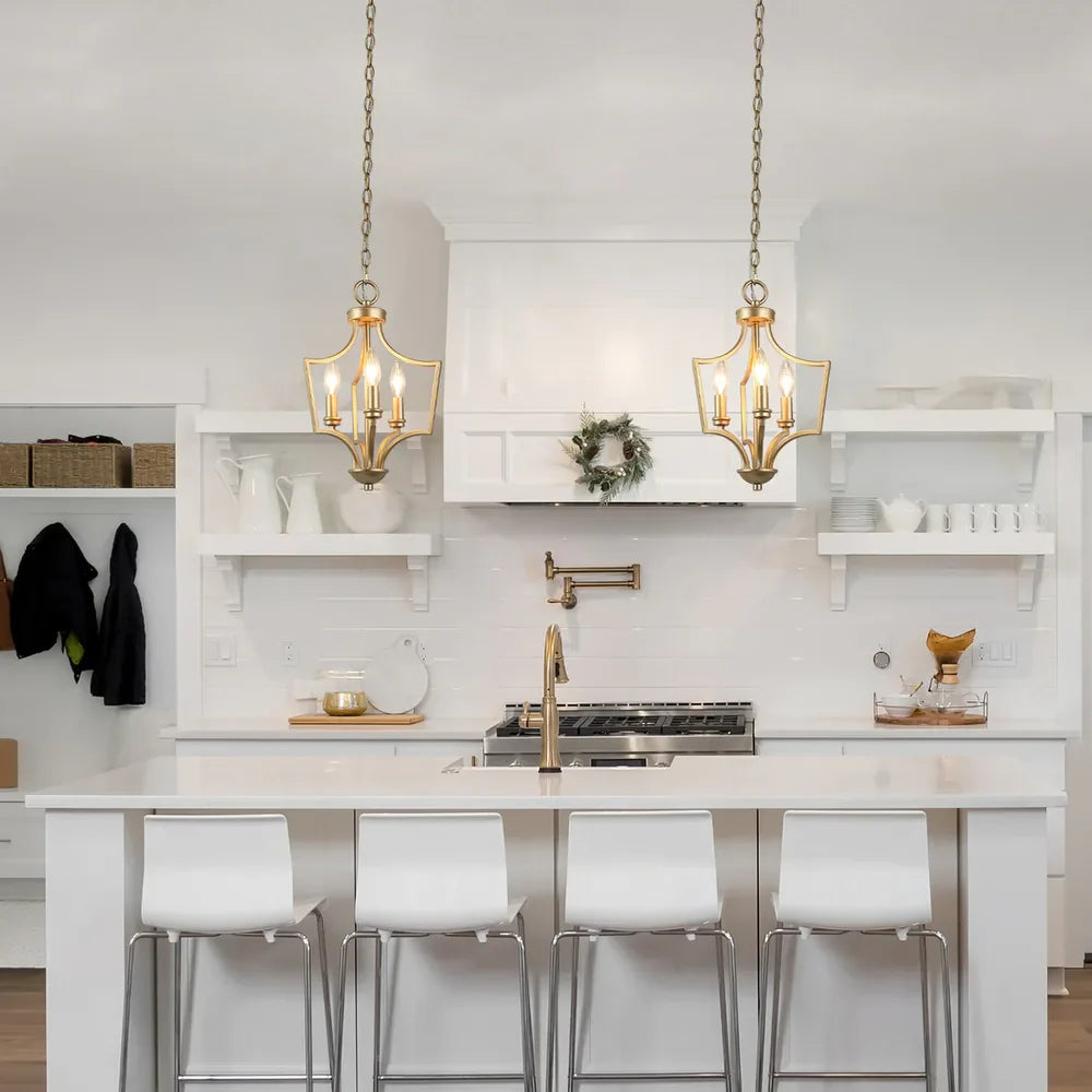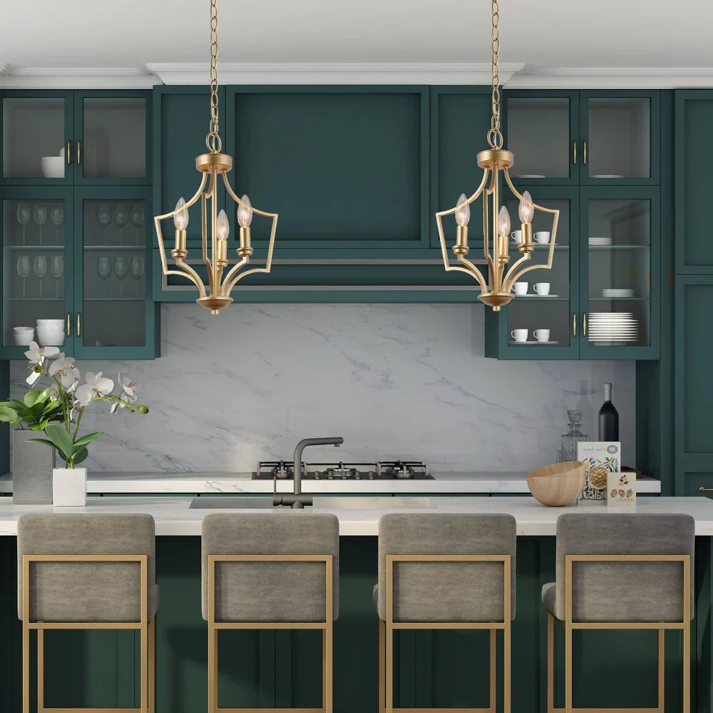 Mid-century Farmhouse Gold 3-Light Lantern Chandelier for Kitchen Island