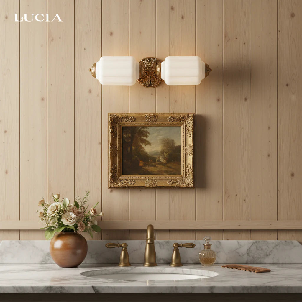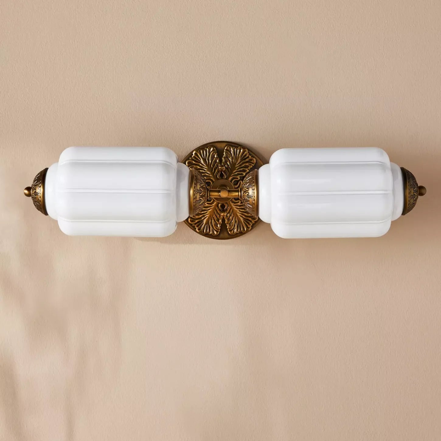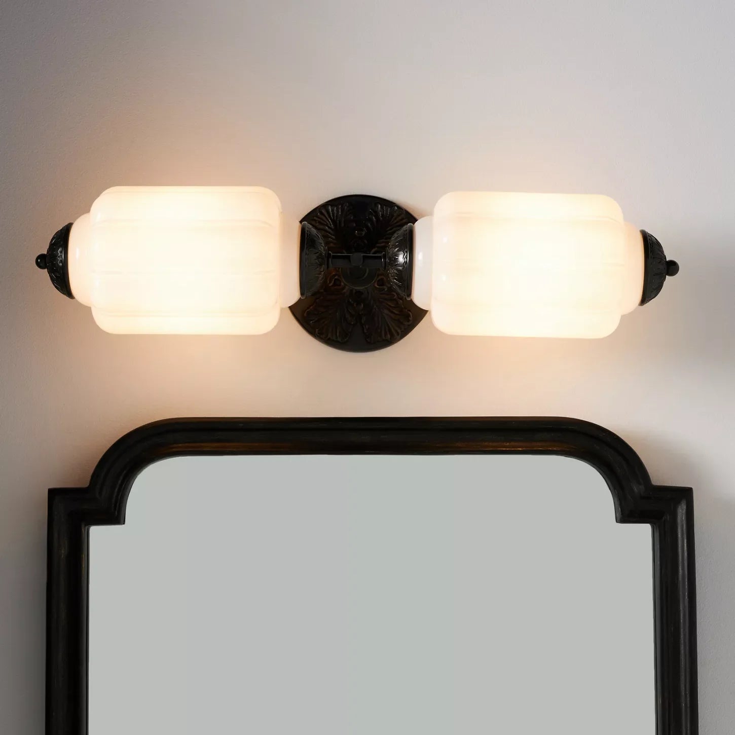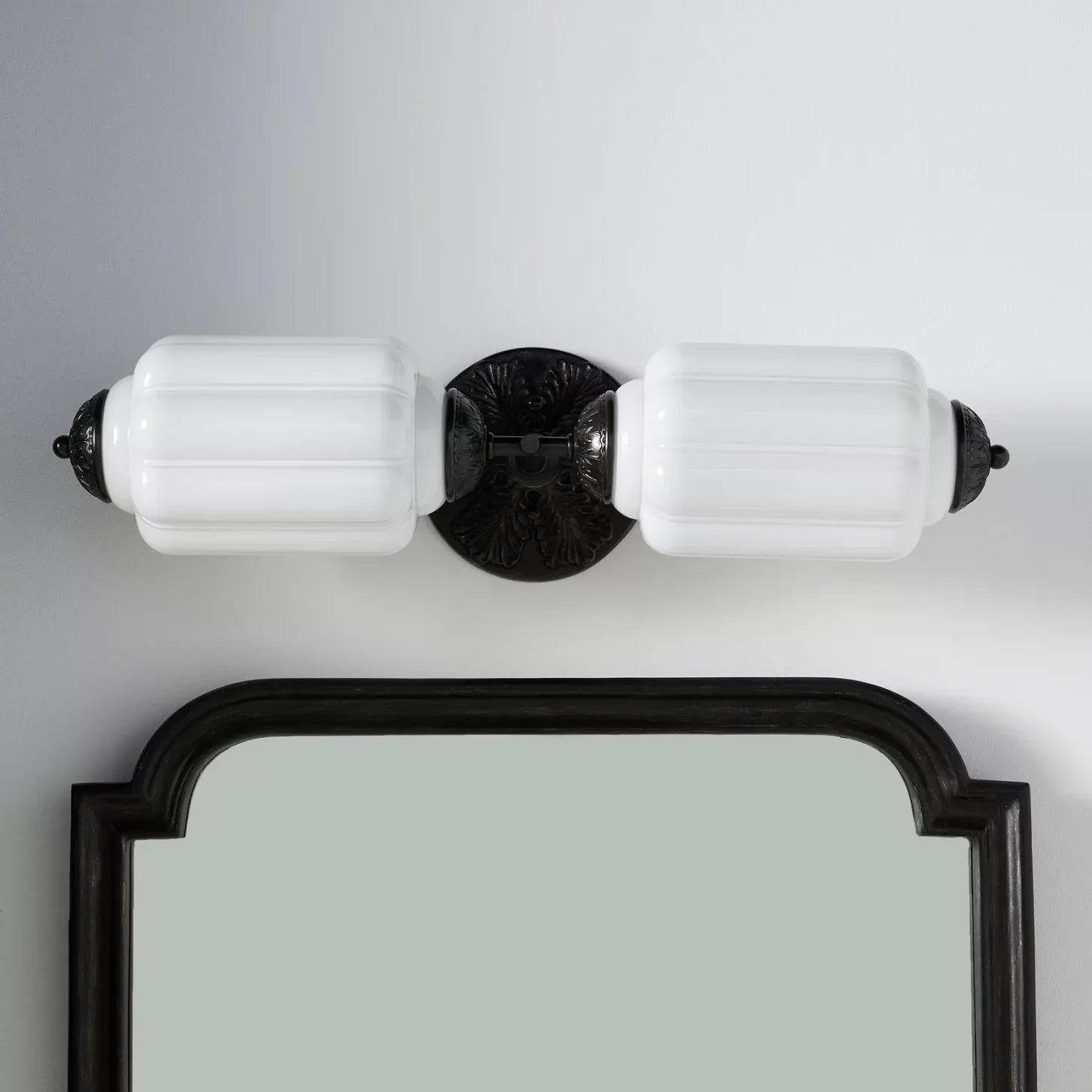 Vintage Art Deco Milk Glass Eloise Vanity Light Fixture