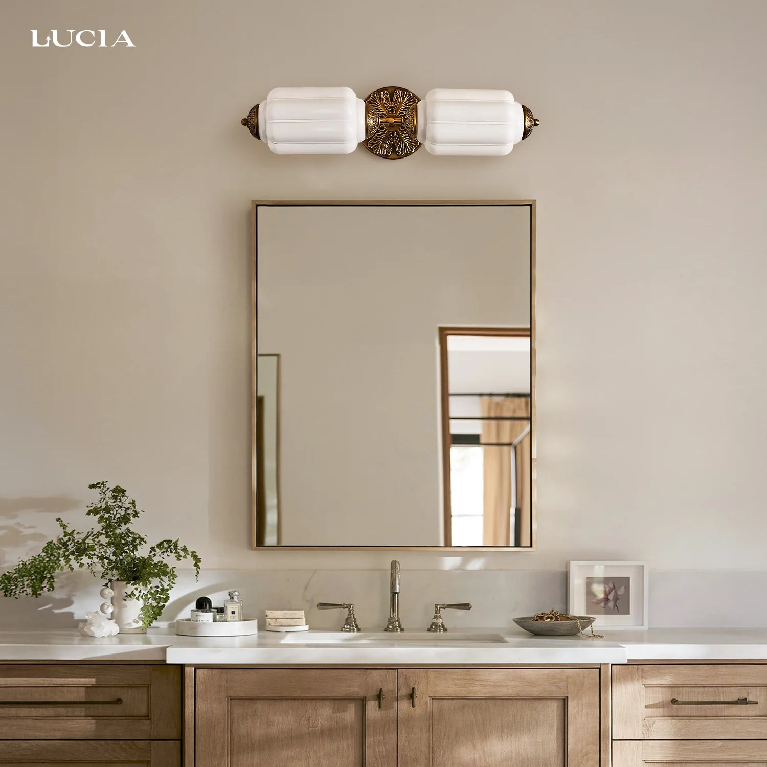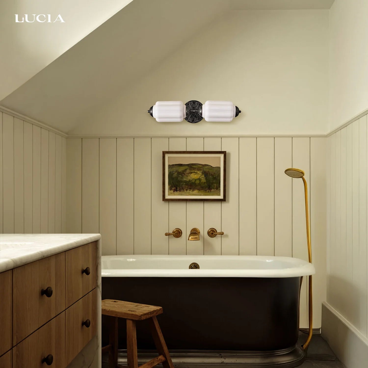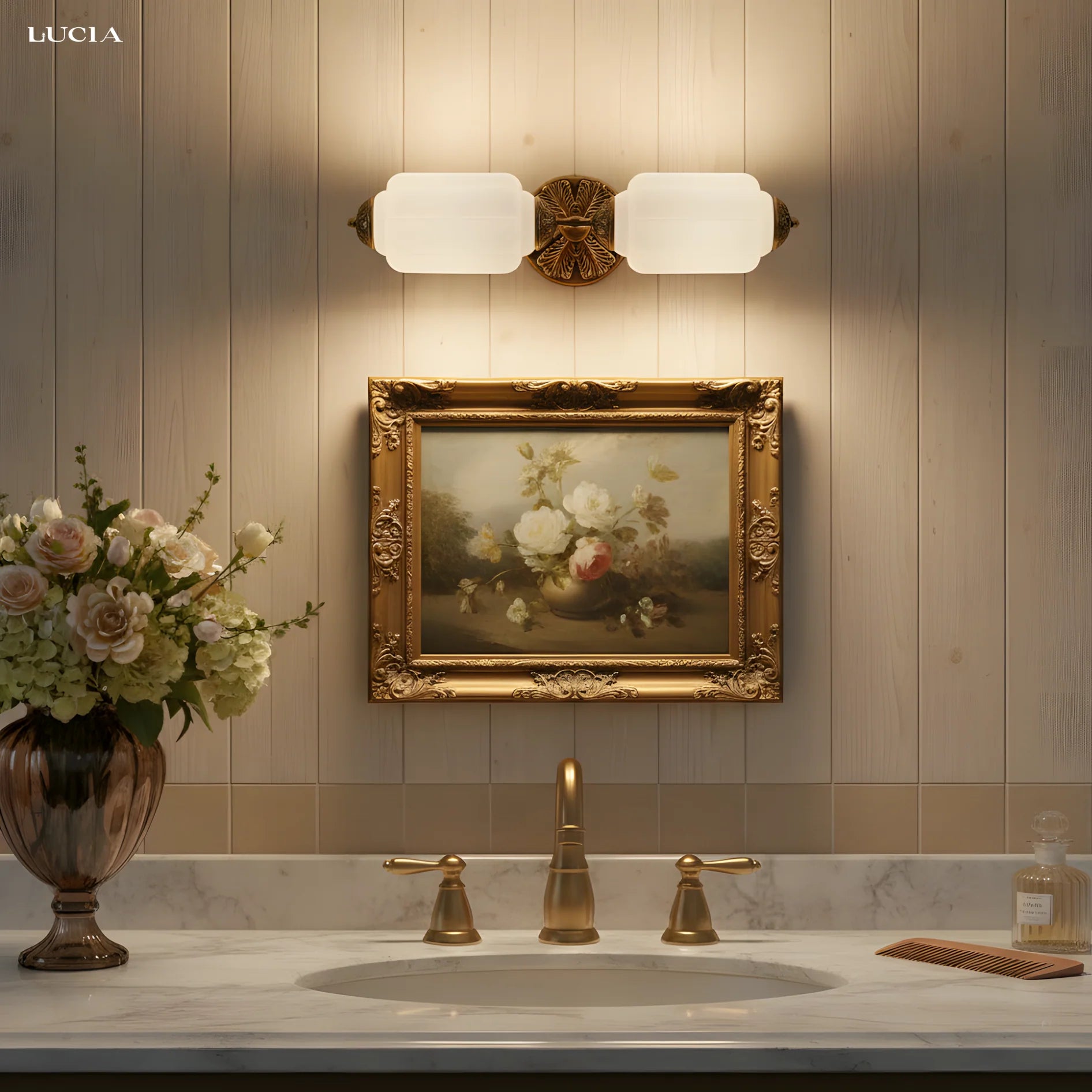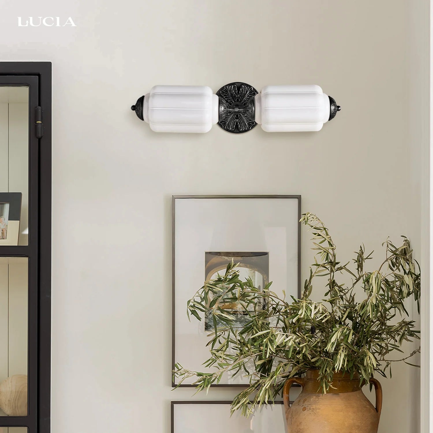 Vintage Art Deco Milk Glass Eloise Vanity Light Fixture