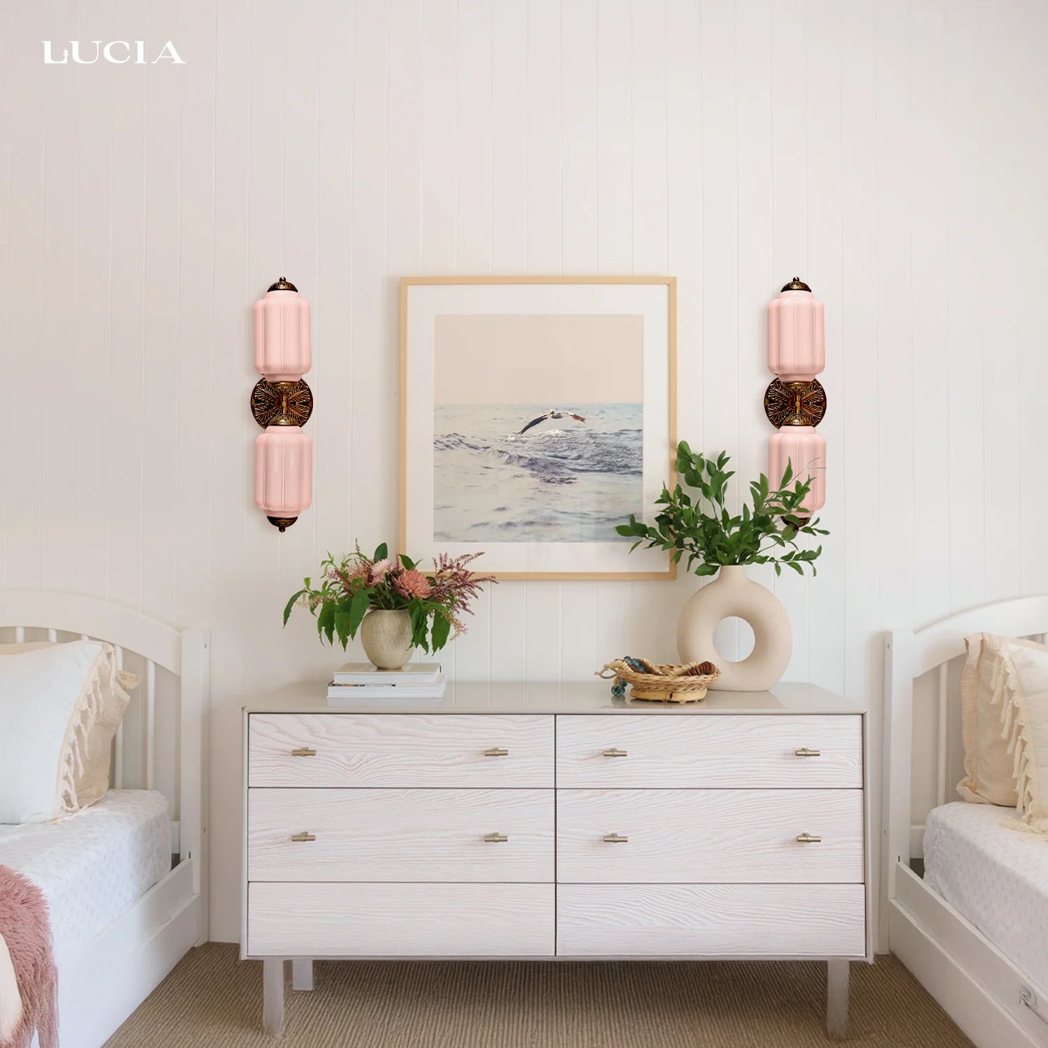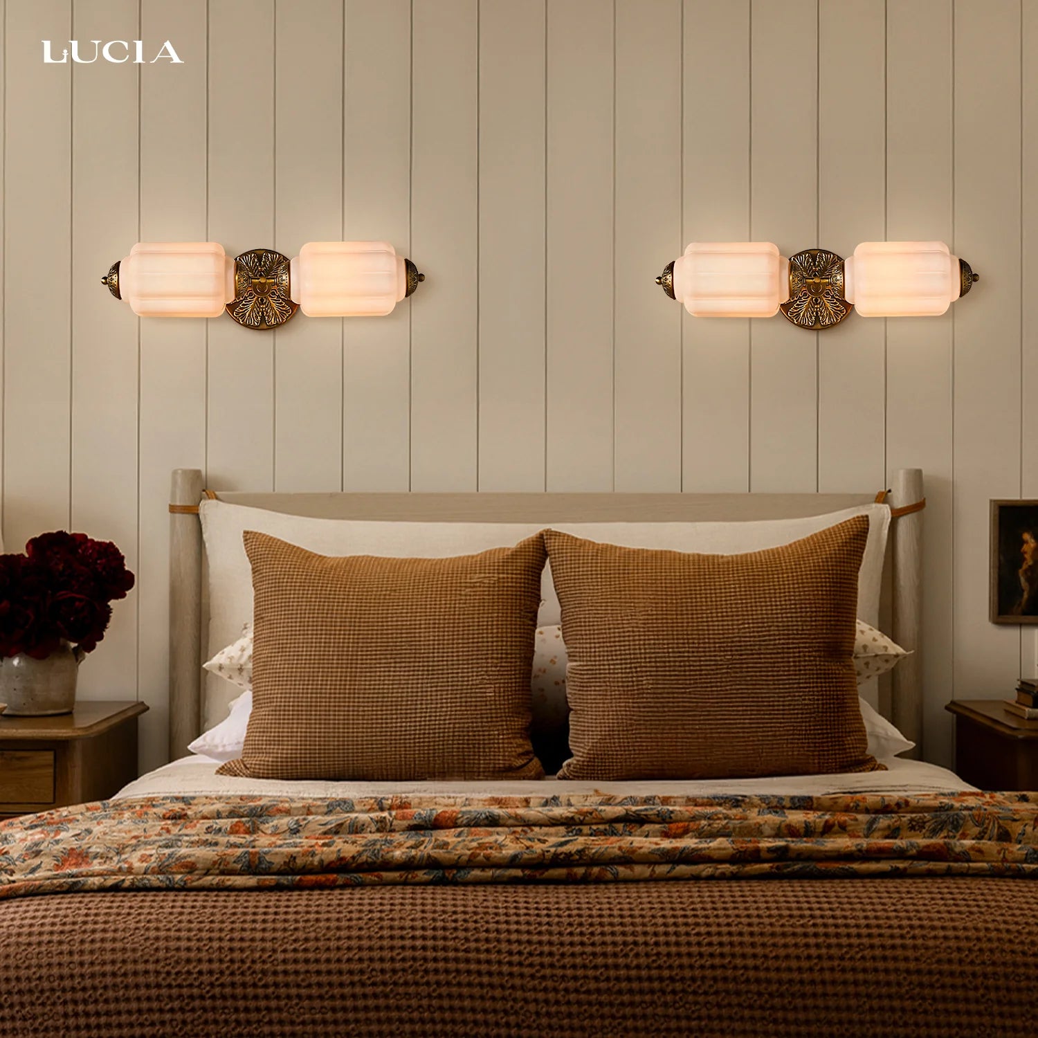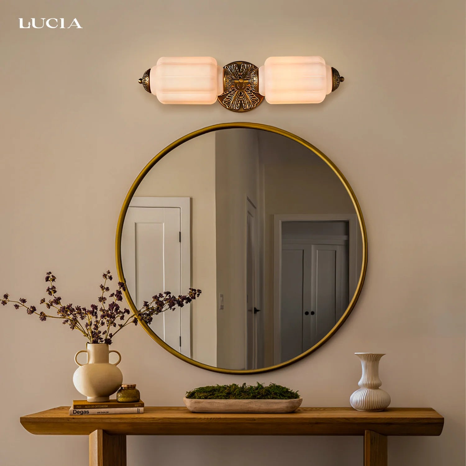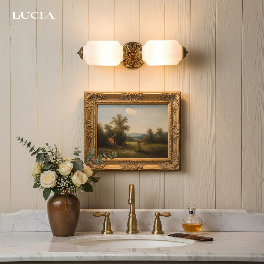 Vintage Art Deco Milk Glass Eloise Vanity Light Fixture