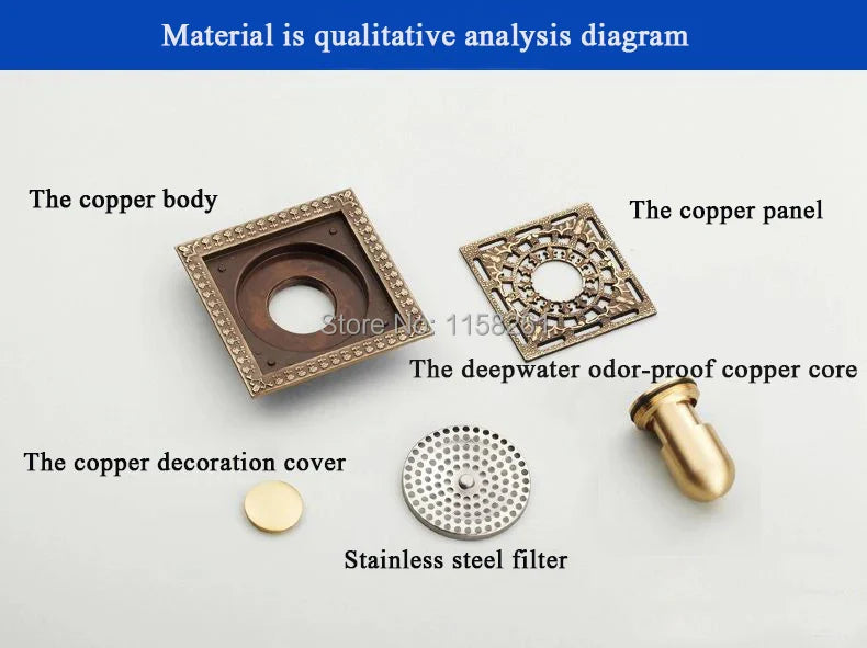 Electroplated for durability, this floor drain in antique brass complements a wide range of bathroom styles. Its sleek square shape adds a modern touch, enhancing the overall aesthetics of your bathroom.
