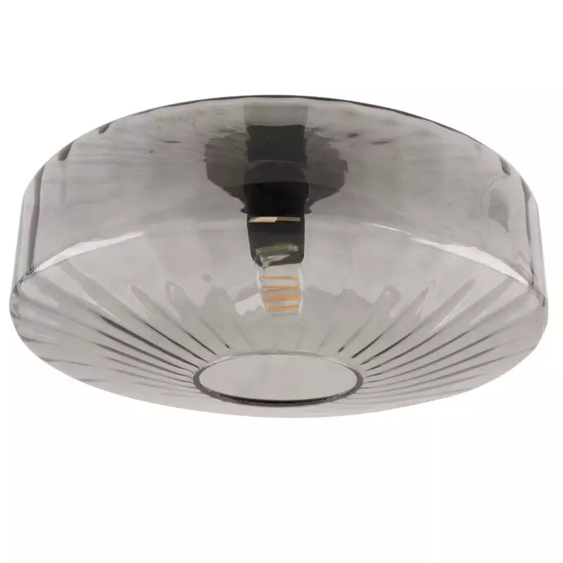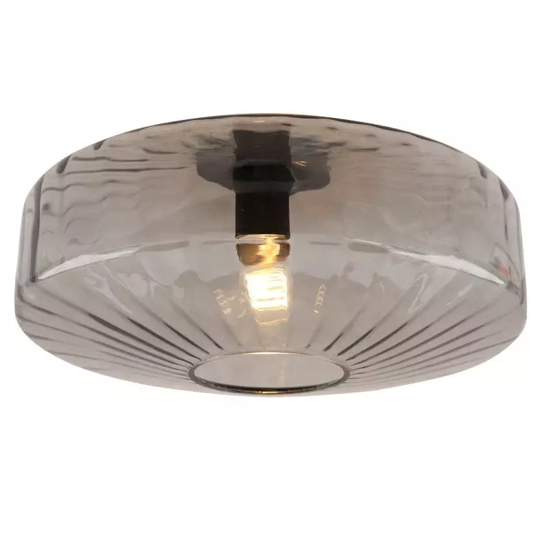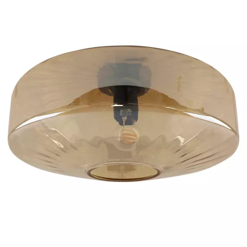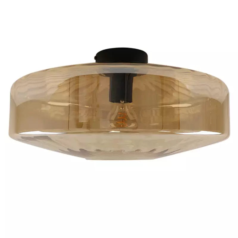Bring a touch of mid-century charm to your home with this drum-shaped ceiling light. Its ripple glass shade creates a mesmerizing play of light, adding texture and warmth. Perfect for dining rooms, bedrooms, and hallways.