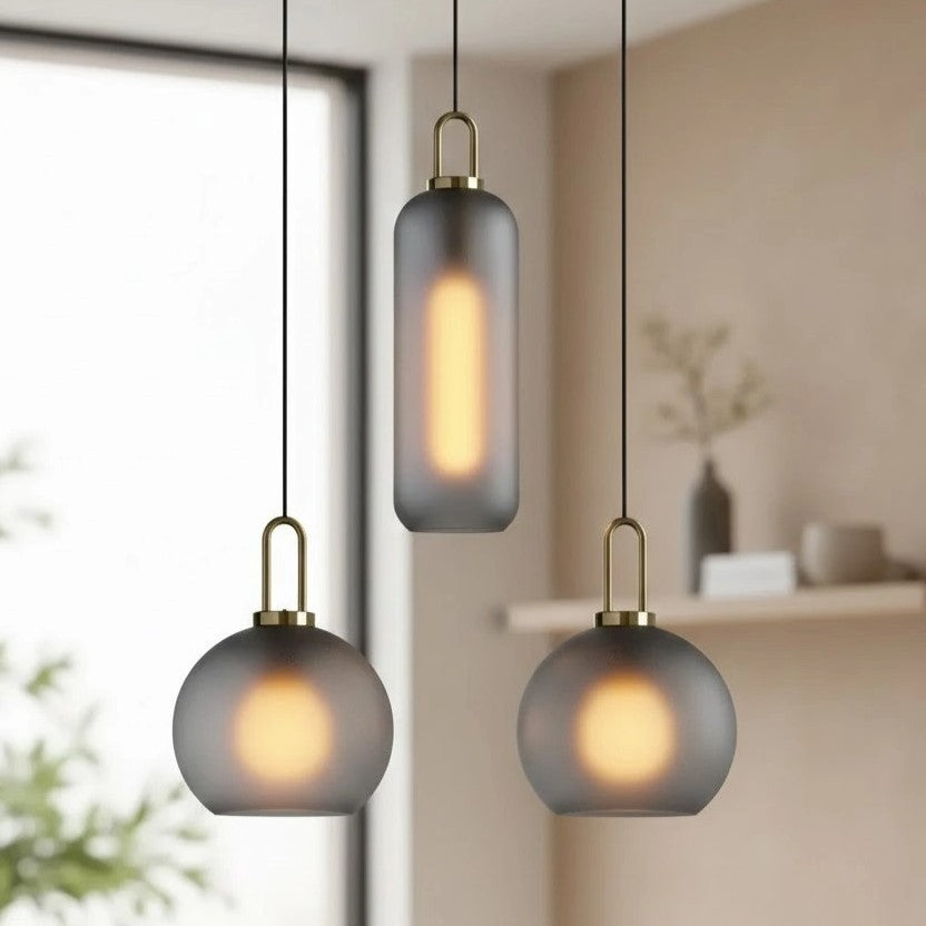 This modern glass pendant light features a sleek, dark, and clear lampshade in the shape of a globe and tube. Its contemporary design is the perfect addition to any room, adding style and sophistication to your space. Using energy-efficient LED bulbs will give you reliable lighting for years to come.