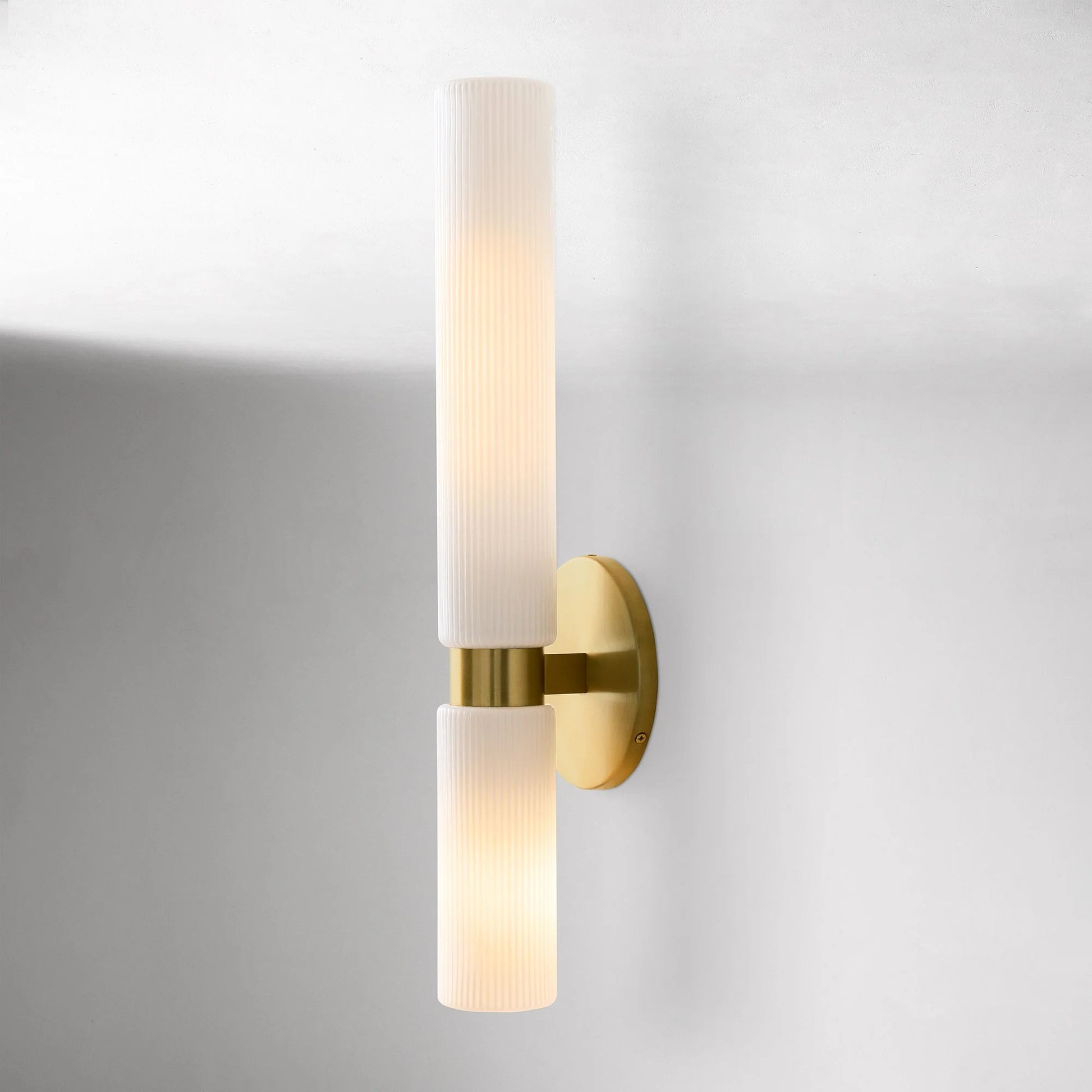Bastian Modern Fluted Glass Double Asymmetrical Sconce