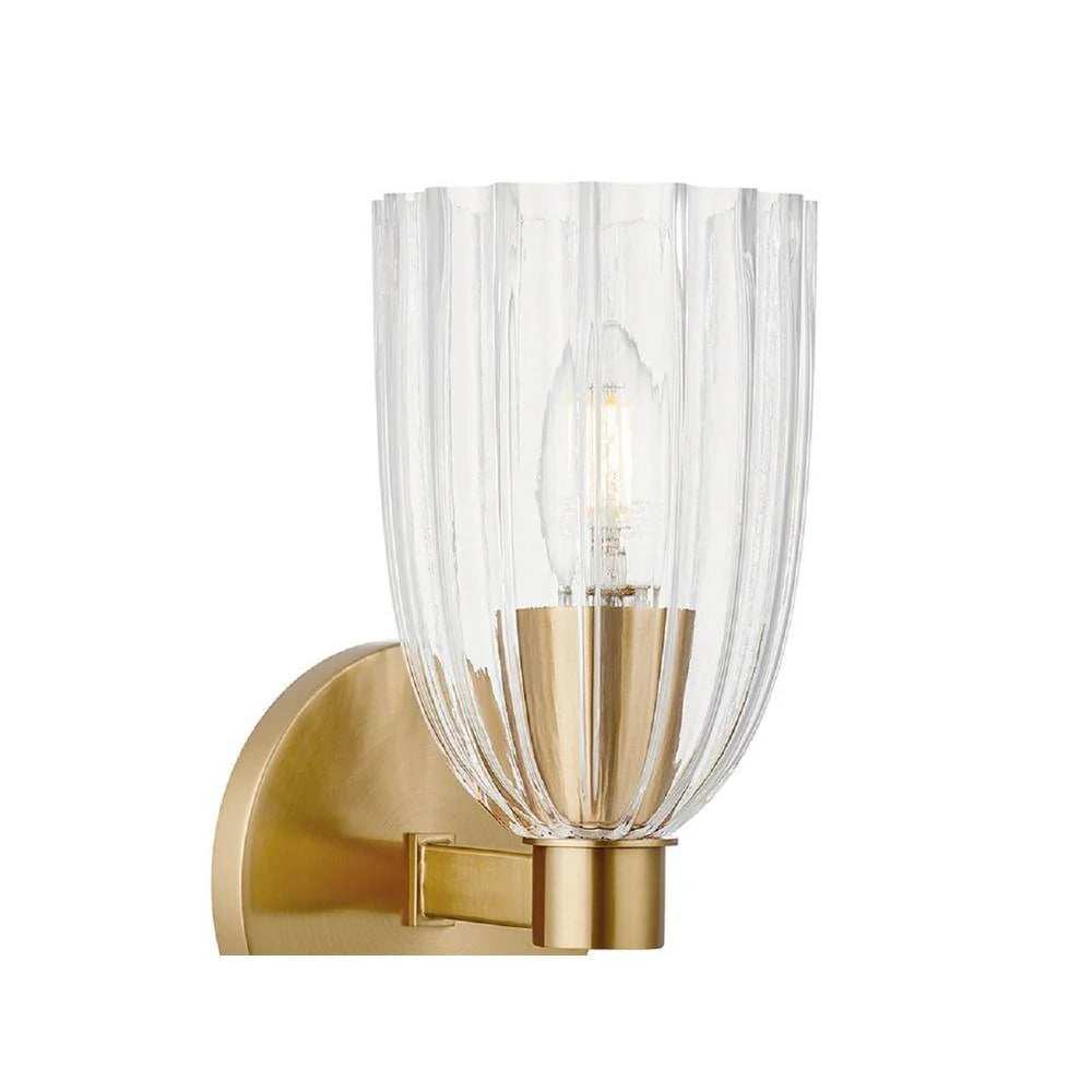 Calista Modern Ribbed Glass Brass Wall Sconce