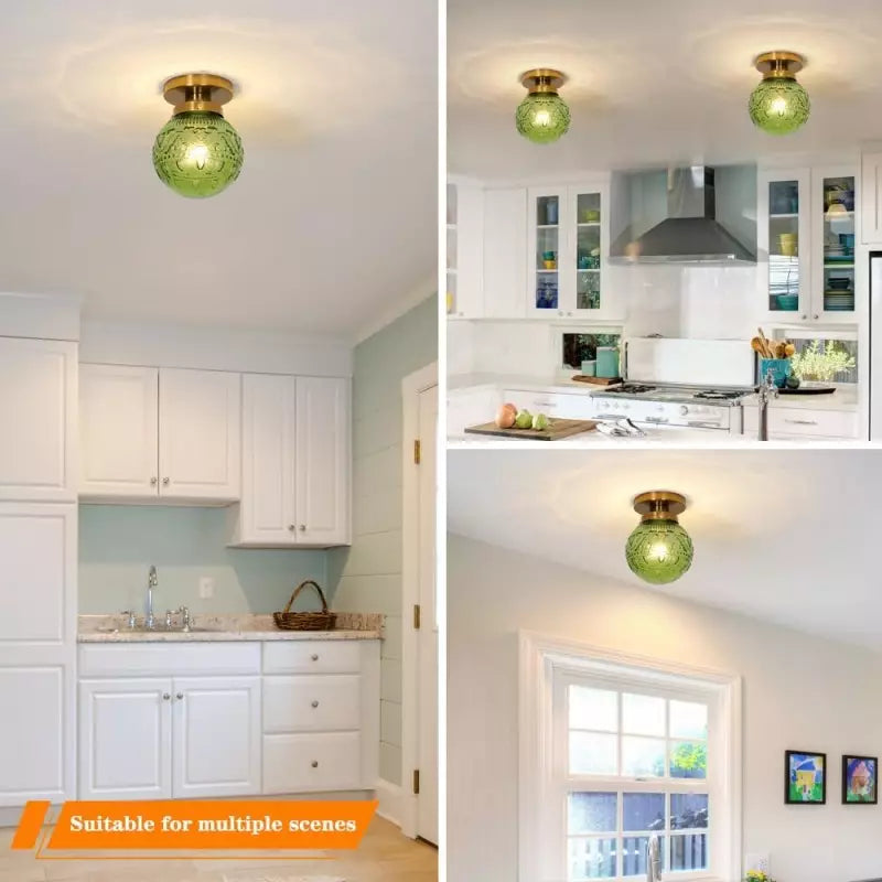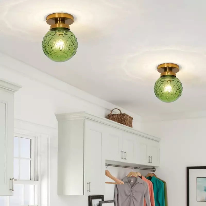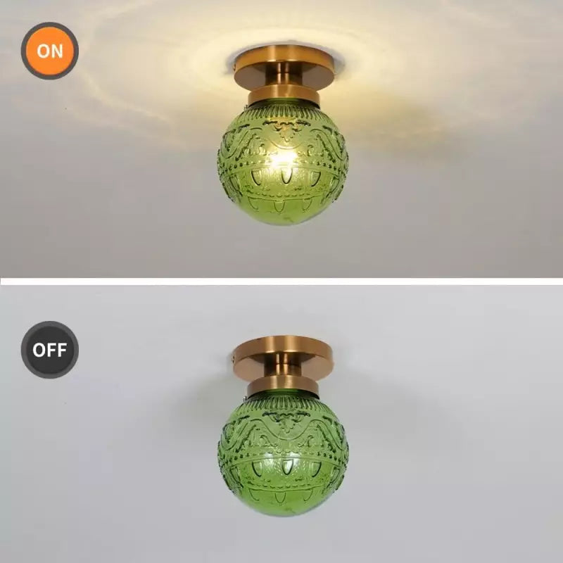 Thetis Vintage Antique Engraved Pattern Globe Glass Ceiling Light