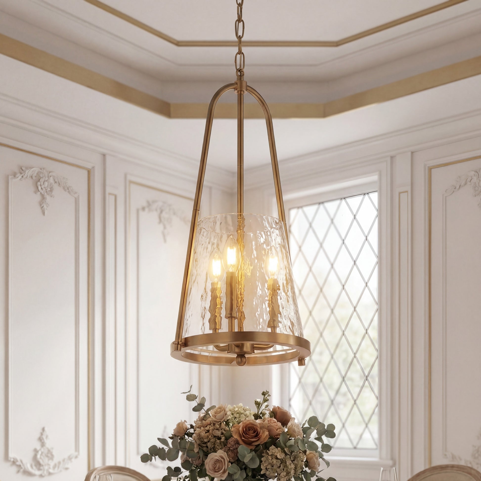 Hammered glass mimics the effect of rippling water, adding visual depth to the design while gently diffusing the light for a softened glow.
