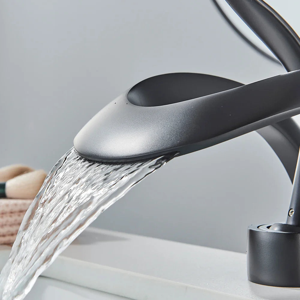 Experience luxury and sophistication in every detail with the Black Basin Faucet Grey Waterfall Mixer Tap. Elevate your bathroom decor with this exquisite piece that exudes class and refinement.